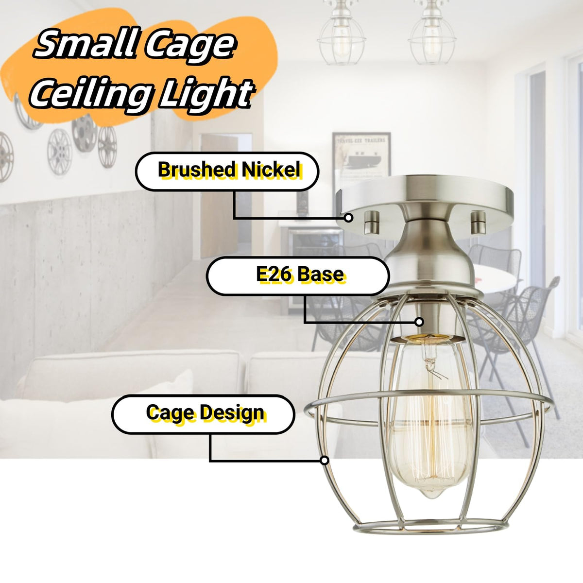 Wisbeam Semi Flush Mount Ceiling Light, Metal, E26 Base, 60W Max, Nickel Finish, Etl Rated, Model Ws-Cl018, Bulbs Not Included, 1