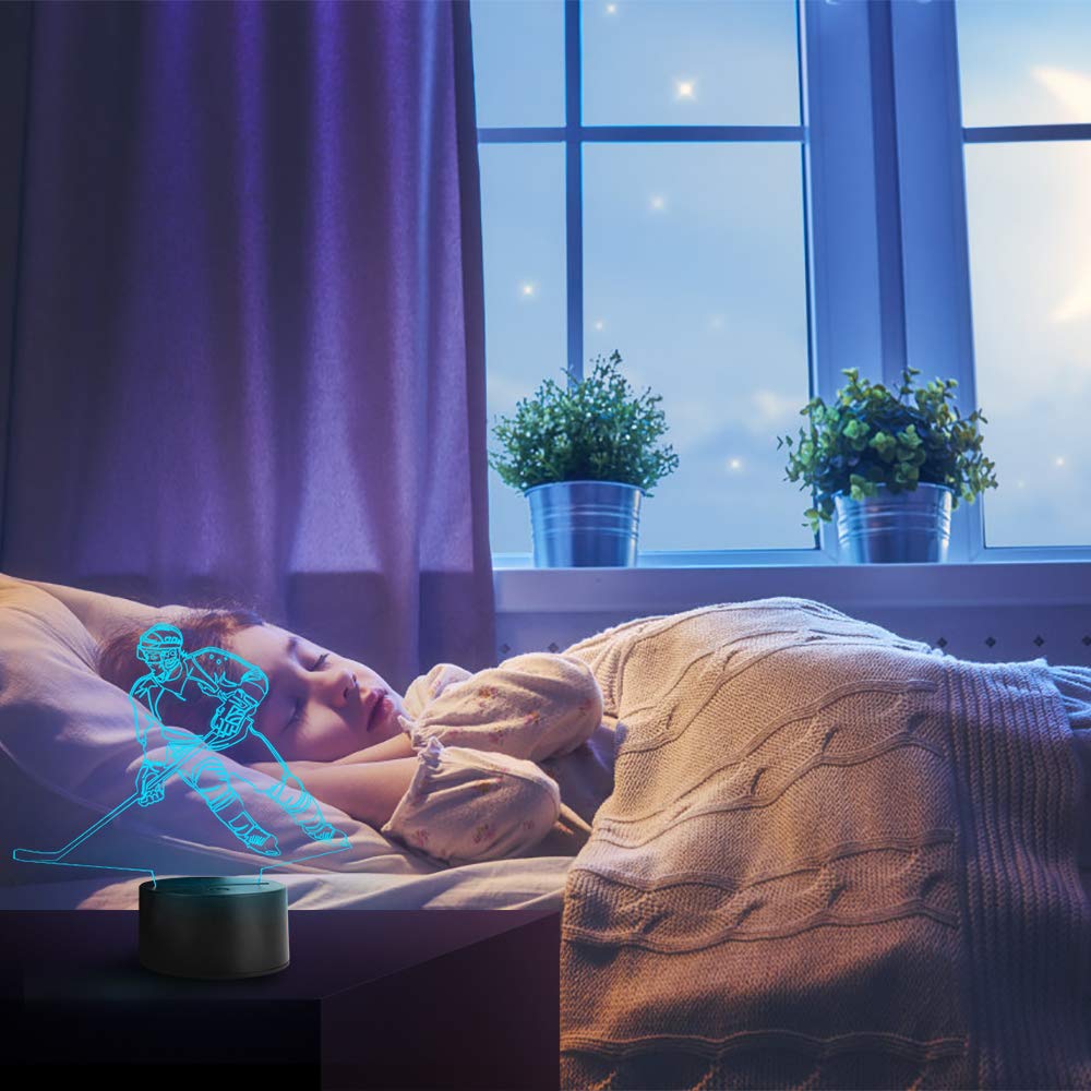 Wiscky 3D Hockey Player Lamp - 7 LED Color Changing Touch Table Lamp, Porcelain, Plastic, Metal, Glass, Cool Gift for Sports Fans