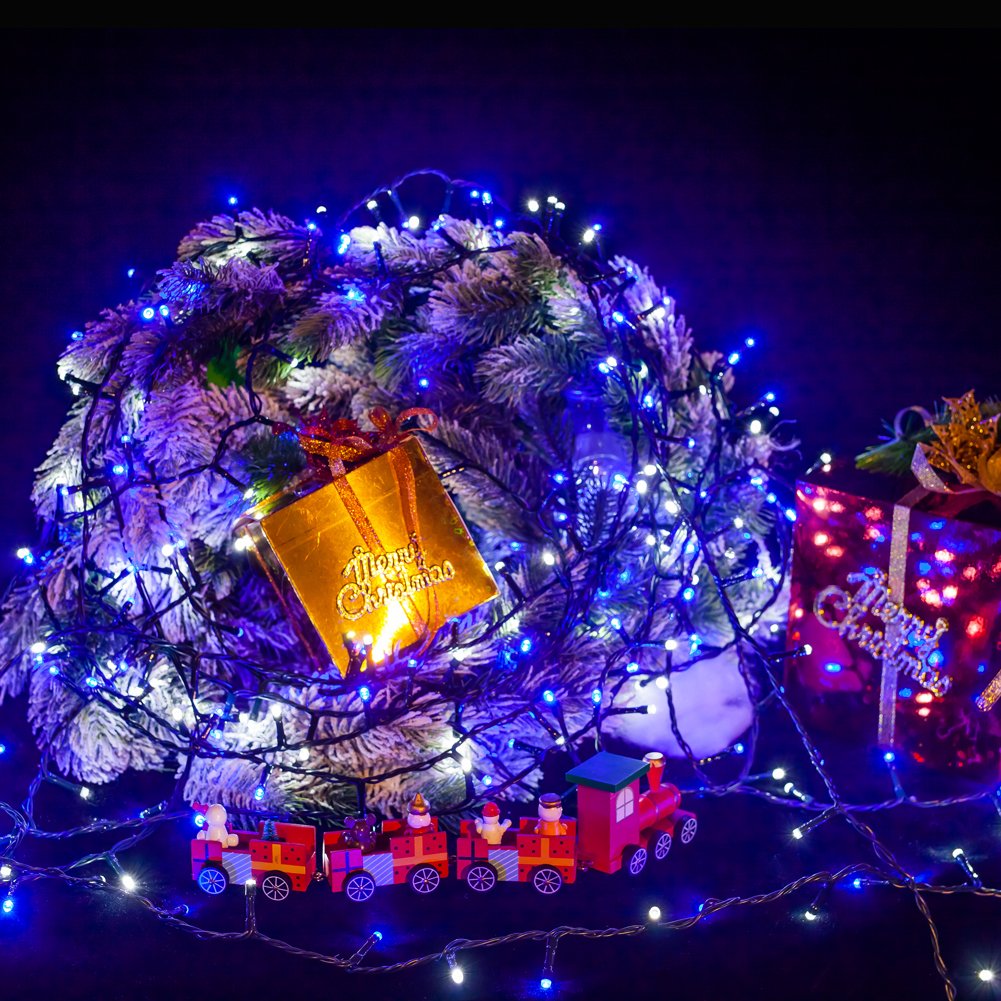 WISD Fairy Lights----Make Your Celebrations come alive Highlight your holiday decorations with these wide angle blue white Christmas lights! 2 beautiful colors on one string, no need to spend more money! Our unique design BLUE & WHITE lights give you one more way to decorate your home, business, or office with a beautiful colors. Just imagine your Christmas trees decorated with this blue & white color lights and silver ornaments, it would be so elegant and classy! No matter where you want to decorate with them, they'll be perfect for bringing beauty and sparkle to your home, office cubicle, or outdoor landscape. Recommends 1.Your front yard. 2.Inside your home. 3.Accent Christmas greenery. 4.Use lights in your wedding .