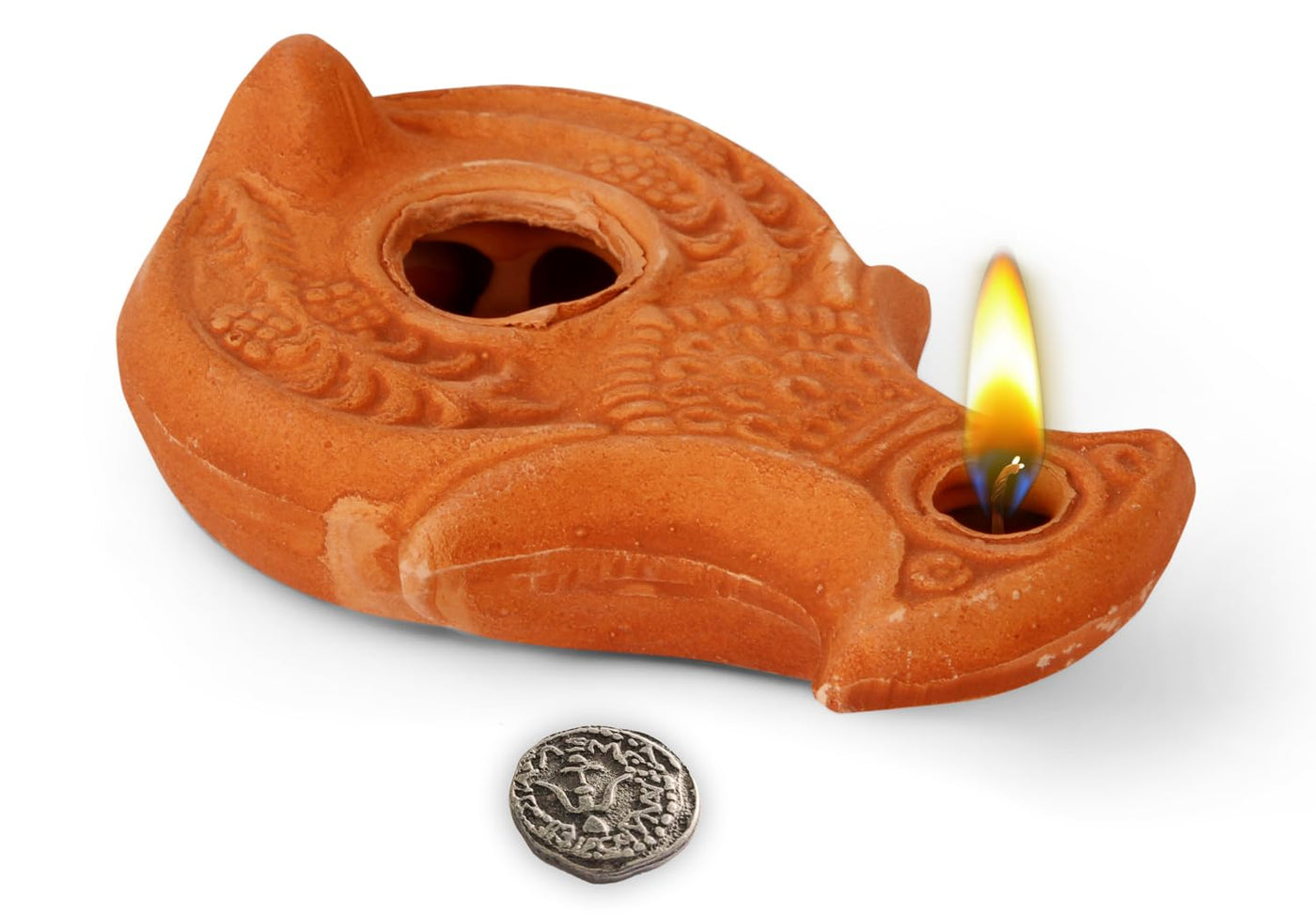 Presenting a remarkable gift duo: A Herodian period oil lamp replica, with a Widow's Mite.