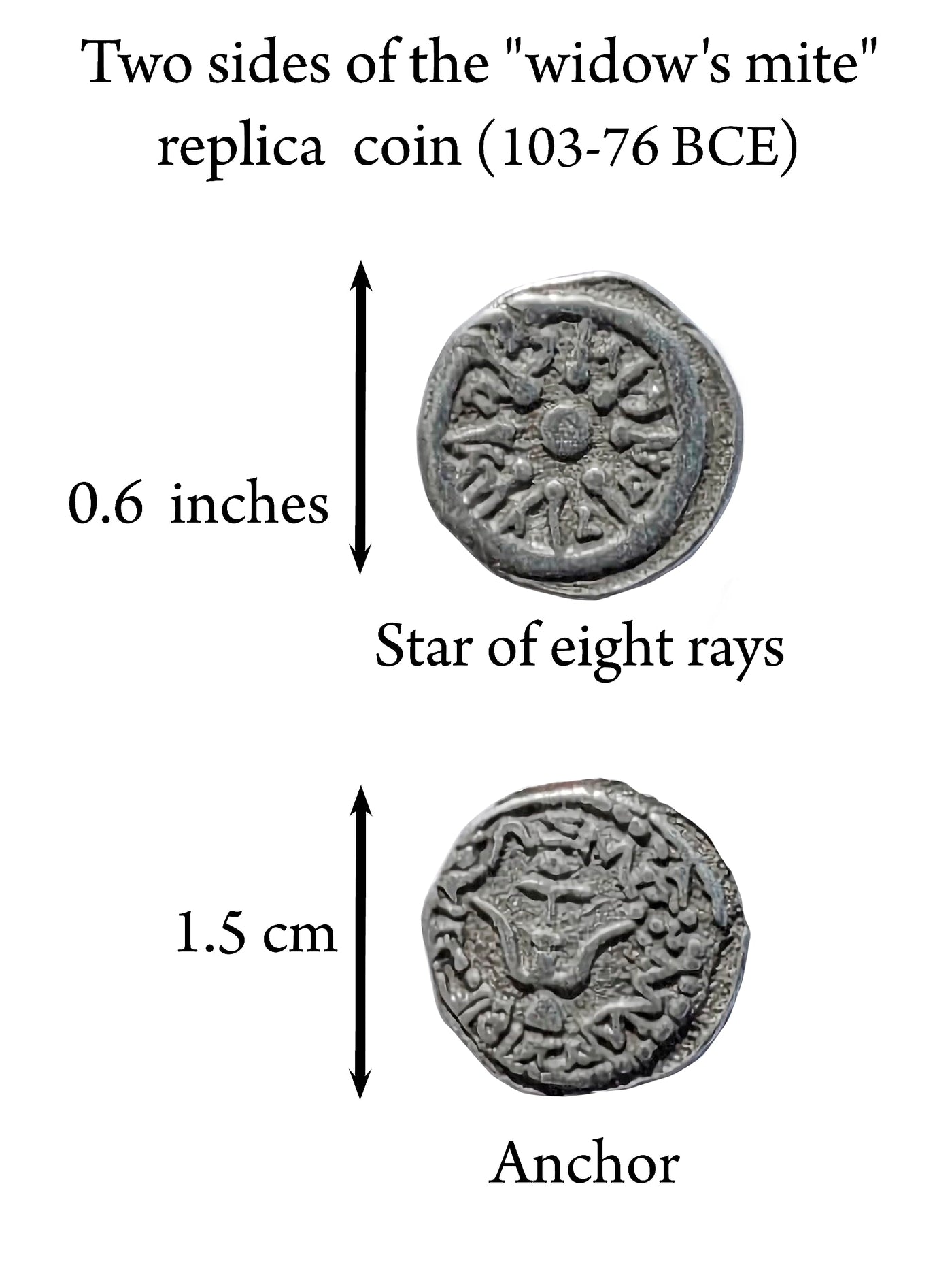 Q: How big is the Widow's Mite Coin?A: Each Widow's Mite Coin measures three-quarters of an inch in diameter.