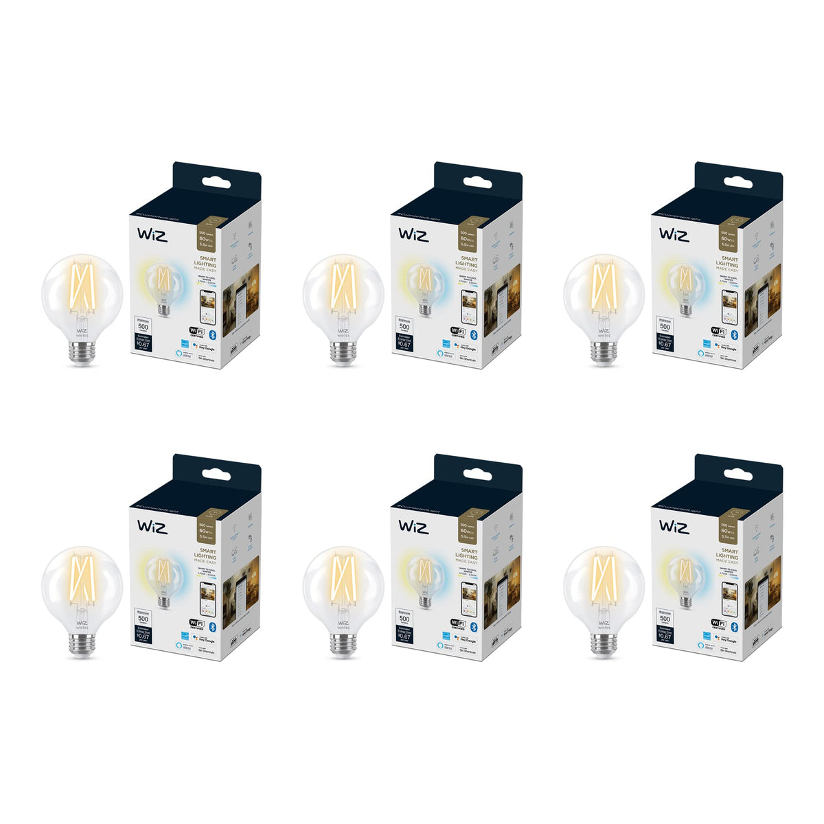 Wiz Clear 60W G25 Tunable White Led Smart Bulb - 6 Pack, Voice/App Control, Wi-Fi, Motion