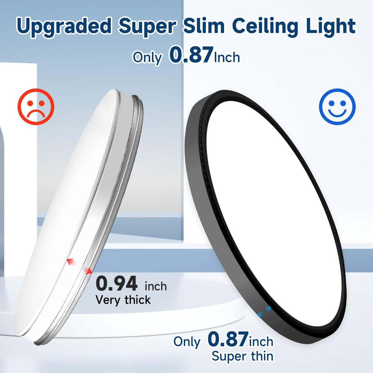 ?FEATURES: ? Ultra Slim Design, only 0.87inch. ? Super bright 1600lm. ? 5 Colors Selectable(3000K/3500K/4500K/5000K/6000K) ?ATTENTION: 1. The ceiling lights are not waterproof and are suitable for indoor