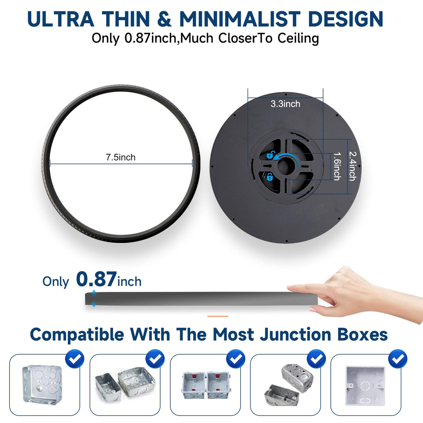 WKONCLDY 7.5Inch LED Ceiling Lights, 5 Colors Selectable, Ultra Thin Flush Mount, Black, Model XDD
