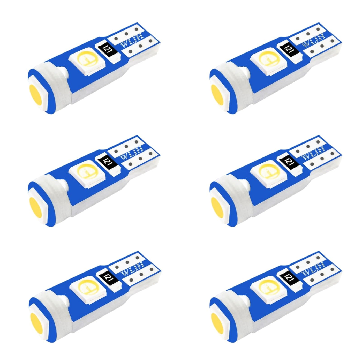 Wljh 6 Pack T5 Led Bulb Yellow 74 73 17 2721 Canbus Error Free 3-Smd 3030 Led Gauge Cluster Dashboard Indicator Light Bulbs,Plug And Play