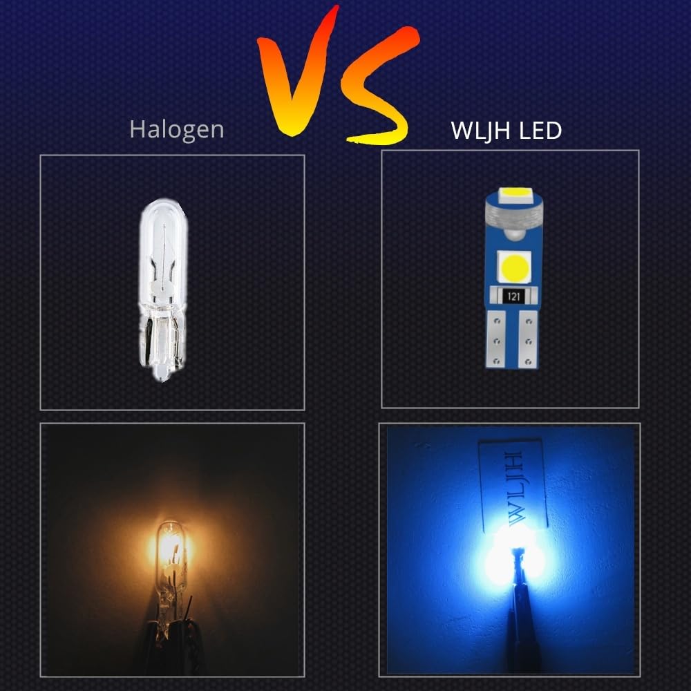 WLJH is enrolled under Amazon Brand Registry For T5 instrument panel led bulbs:Wattage:15WLumens:100LMDimension(Length*Width):067x 0193030chips SMD- Small in size Huge in BrightnessRuns on 12V power source,Energy-Saving, Low temperature, Low Power consumption, Long-lasting Life up to 60,000 hoursFor T5 Twist Lock Base:Dimension: W21x49d - Subminiature WedgeMini wedge bulb socket fits a 38 or 9mm diameter hole,Easy installation, just plug and playcross Reference:T5 17,18,27,37 ,57,58,70,73, 74, 79,85, 86,206,207,286,306,2721Why choose us:Our quality are Built to strict control standards on every bulb and We offer 2 YEARS warrantwe are specialized in auto led bulbs for few years, strict working attitude, every customer will get High-quality products and services in our storeWLJH always highly respects technique and innovation and has been pursuing first-class products and serviceATTENTION:If the LED does not light up, simply Rotating it 180 degrees (reverse the polarity)Package Including:20pcs t5 twist lock base20pcs t5 wedge led bulbs