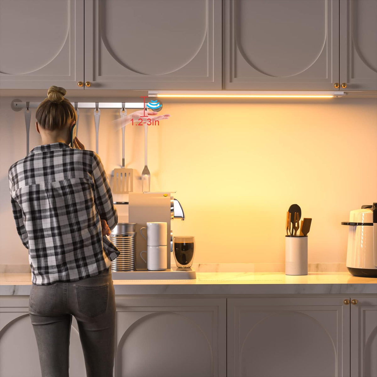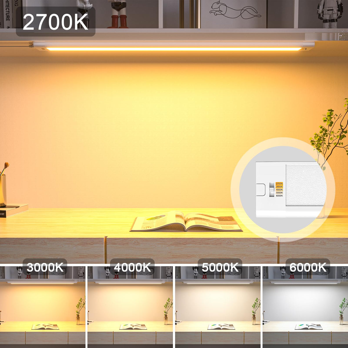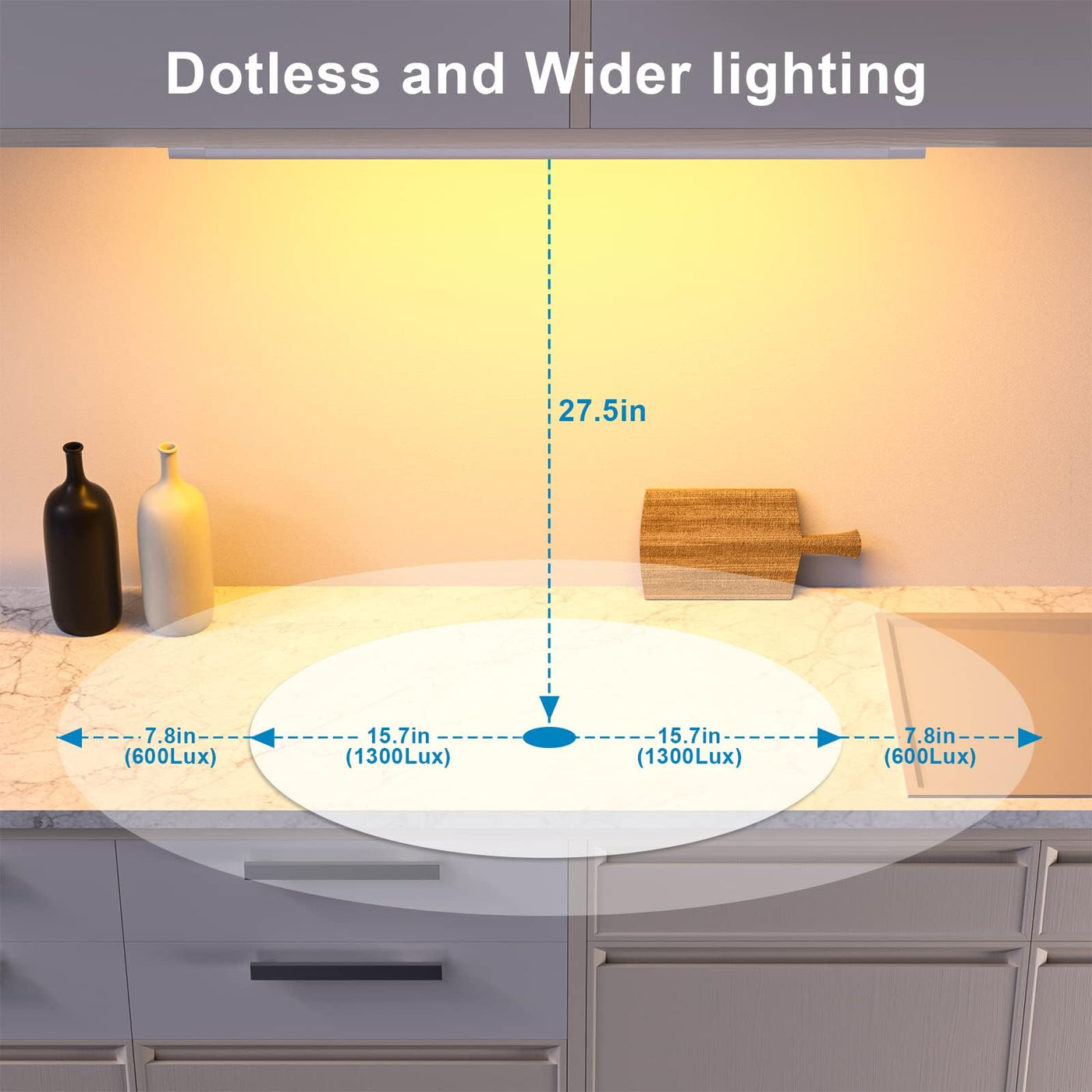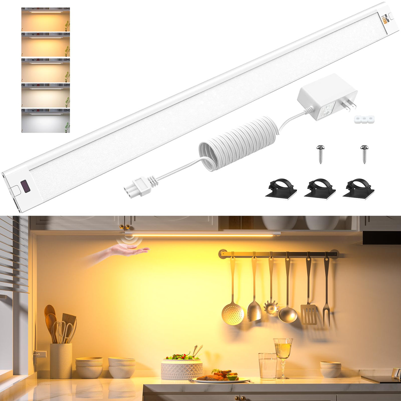 Under Cabinet Lighting,WOBANE 16.5 inch Under Counter Lights for Kitchen, Hand Wave Activated,Touchless for Kitchen Cabinet,Shelf, Under Desk,Color Tunable 2700K to 6000K,Dimmable ,White Panel,1000LM