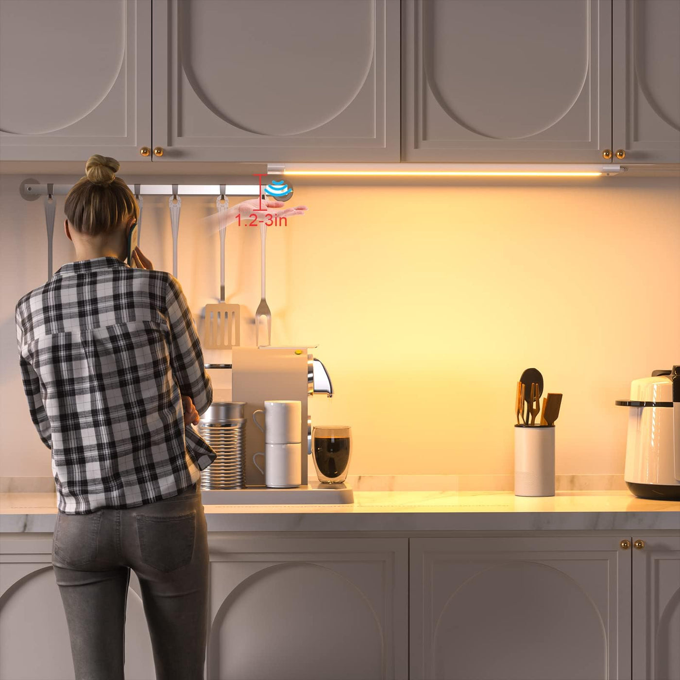 Wobane 16.5 Inch Under Cabinet Lighting,5 Color Settings,Under Counter Lights For Kitchen,Hand Wave Activated,Touchless For Cabi