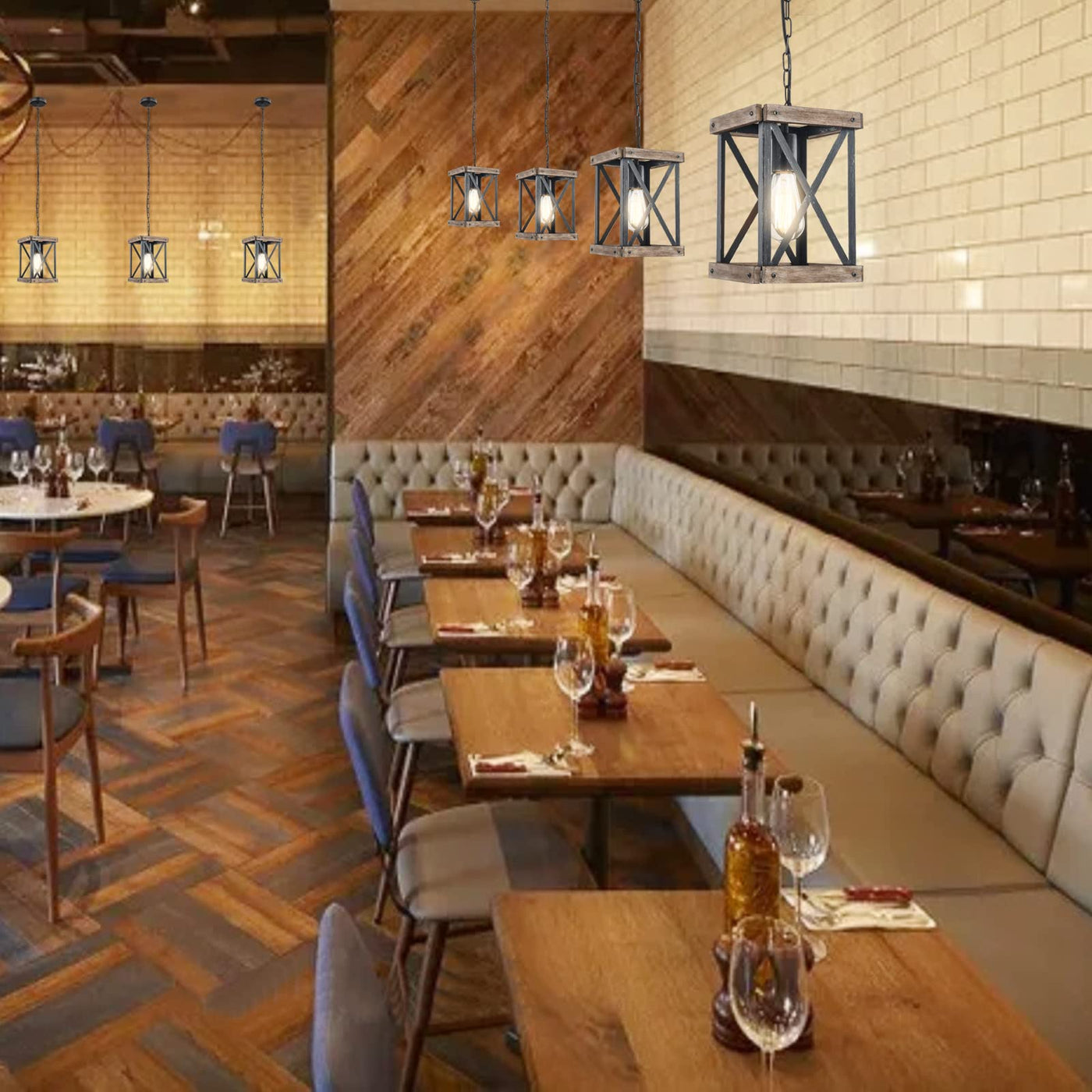 Wochos Farmhouse Pendant Light, Adjustable Metal And Wood Chandelier Light Fixture, Rustic Pendant Lighting For Kitchen Island,