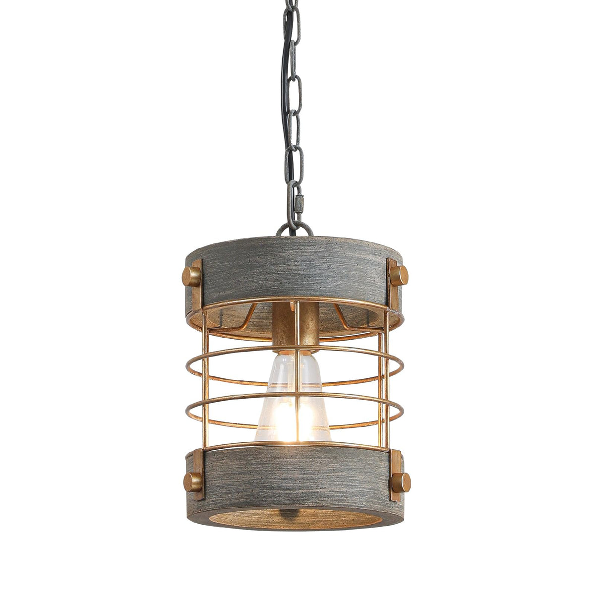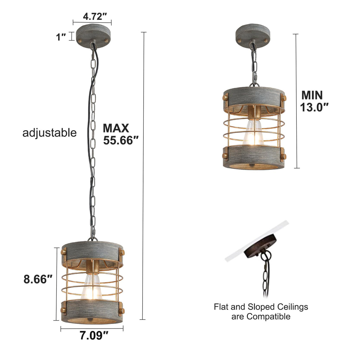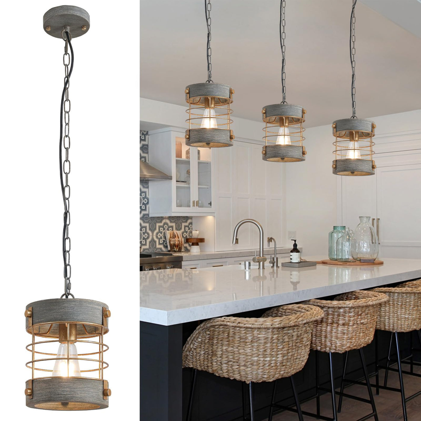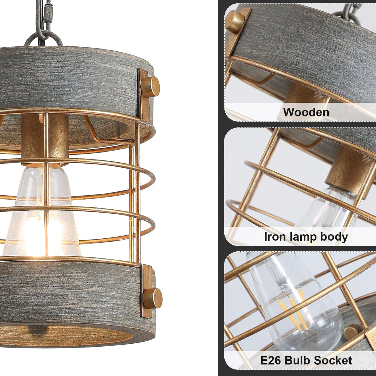 Wochos Retro Industrial Metal And Wood Chandelier 1-Light Round Cage Pendant Light Fixture For Kitchen Island Foyer Hallway Bar