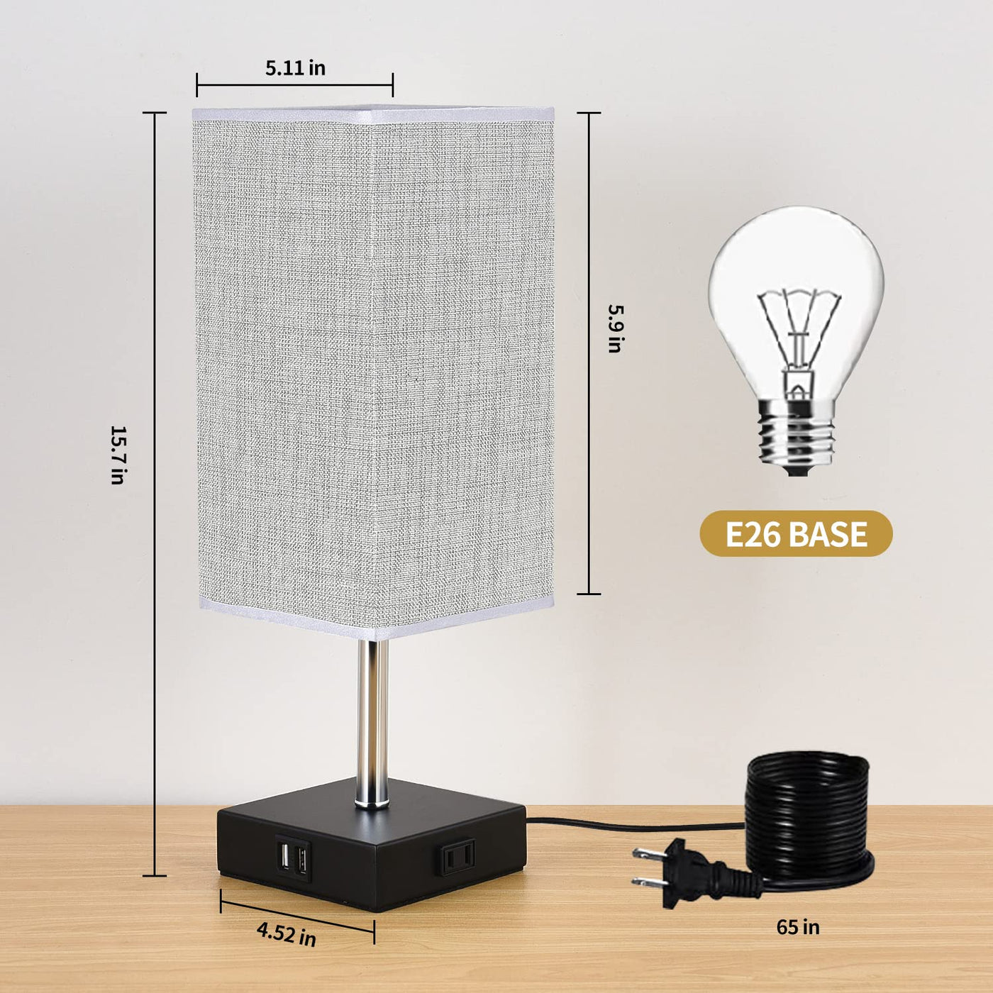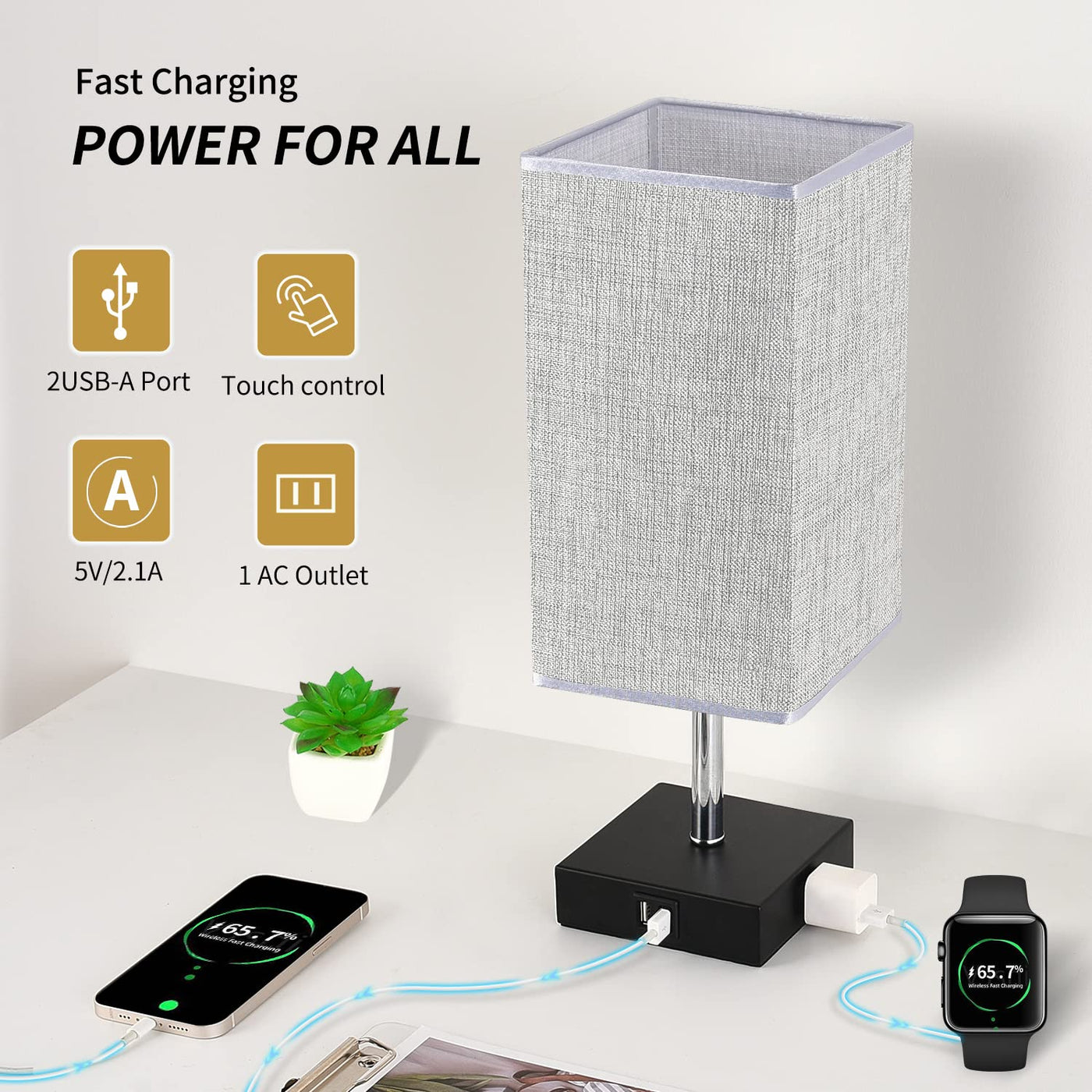 Q: Can I charge my devices while using the lamp?A: Yes, this bedside lamp is equipped with 2 USB ports and 1 AC outlet, allowing you to charge your smartphone, tablet, or other electronic devices while the lamp is in use. This feature is especially convenient during power outages.