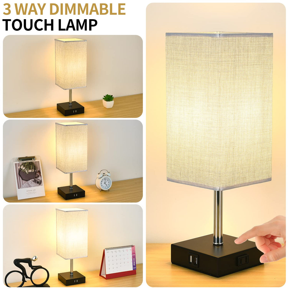 Woderdeng Touch Control Bedside Lamp - 3-Way Dimmable Table Lamps With 2 Usb Port And Outlet, Nightstand Lamp For Bedroom Decor