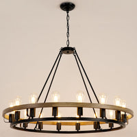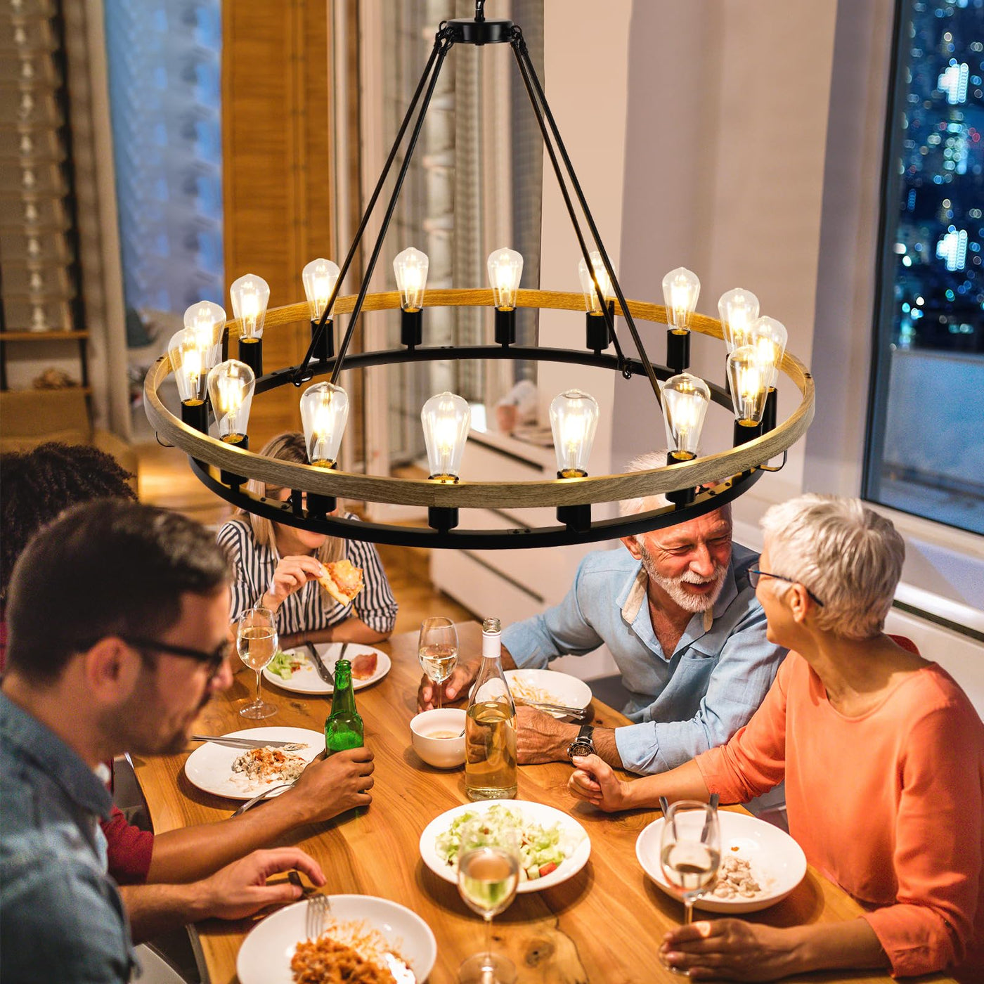 Wogon Weel Wagon Wheel Chandelier 16-Light 39-Inch, Black And Oak Wood Tone Finish Round Rustic Farmhouse Chandelier Extra Large