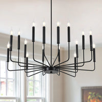 Woknos Modern Black Farmhouse Chandeliers, 16-Light Industrial Metal Chandelier Lighting, Classic Candle Hanging Pendant Light F