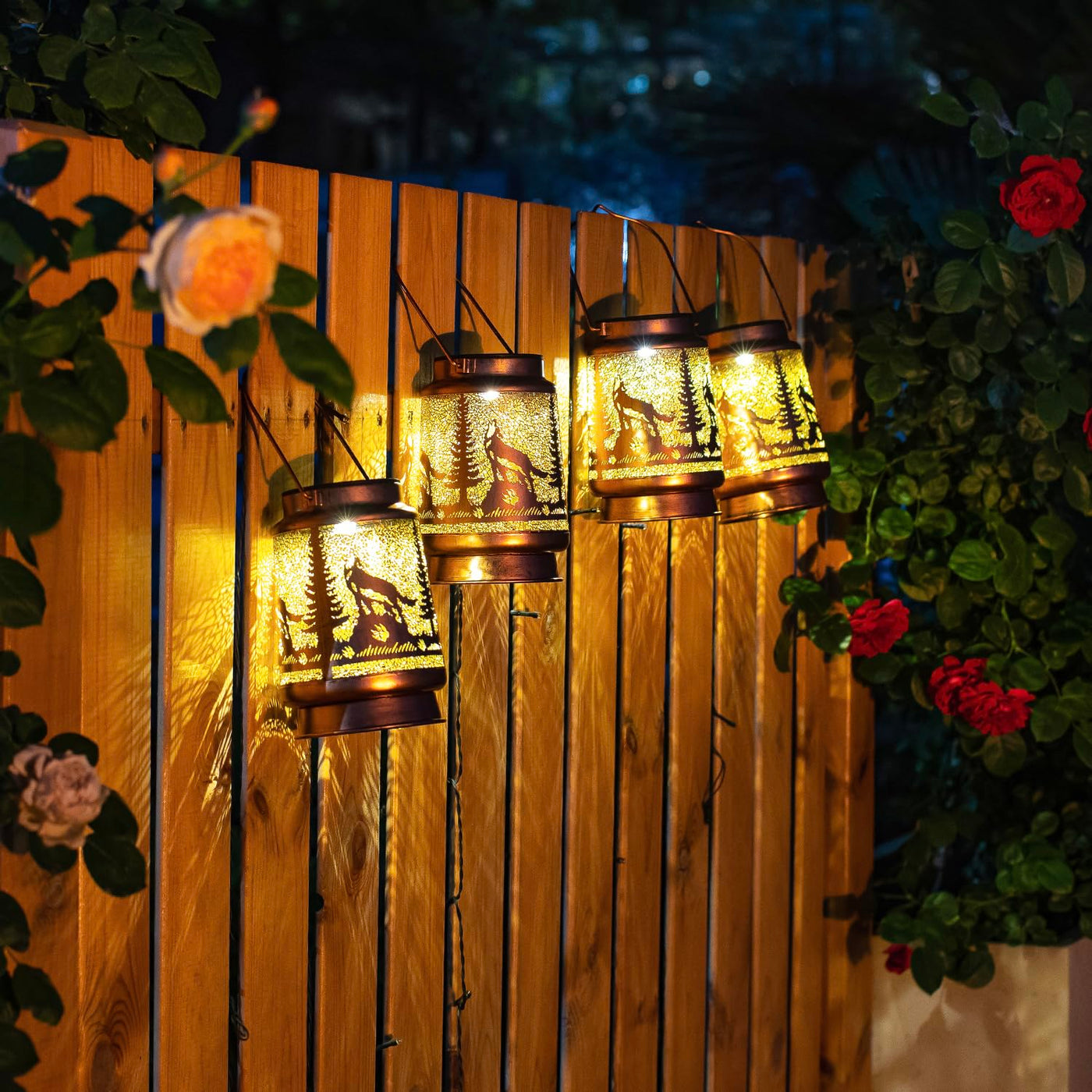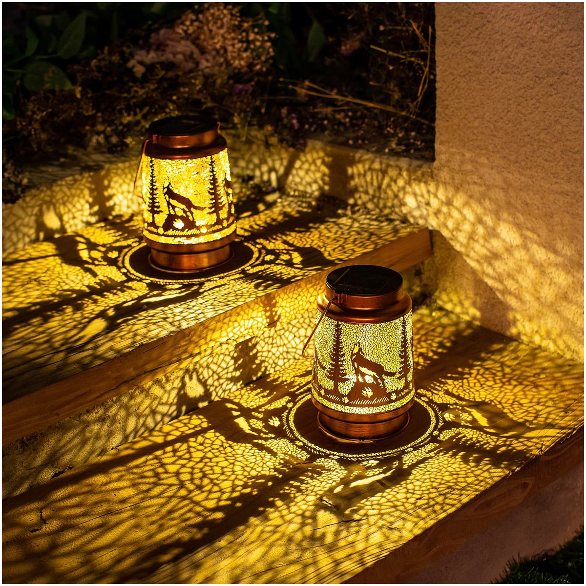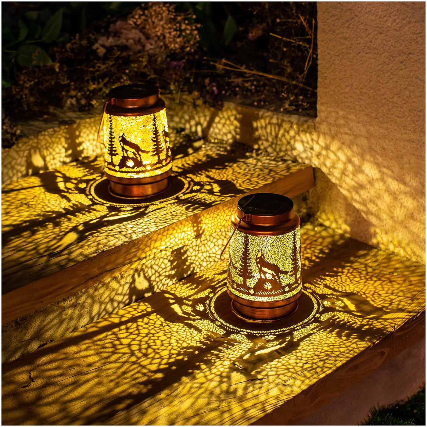 Wolf Solar Lanterns Outdoor Waterproof Hanging Solar Lights Wolf Gifts For Women Men Metal Decorative Led Wolf Lanterns For Gard