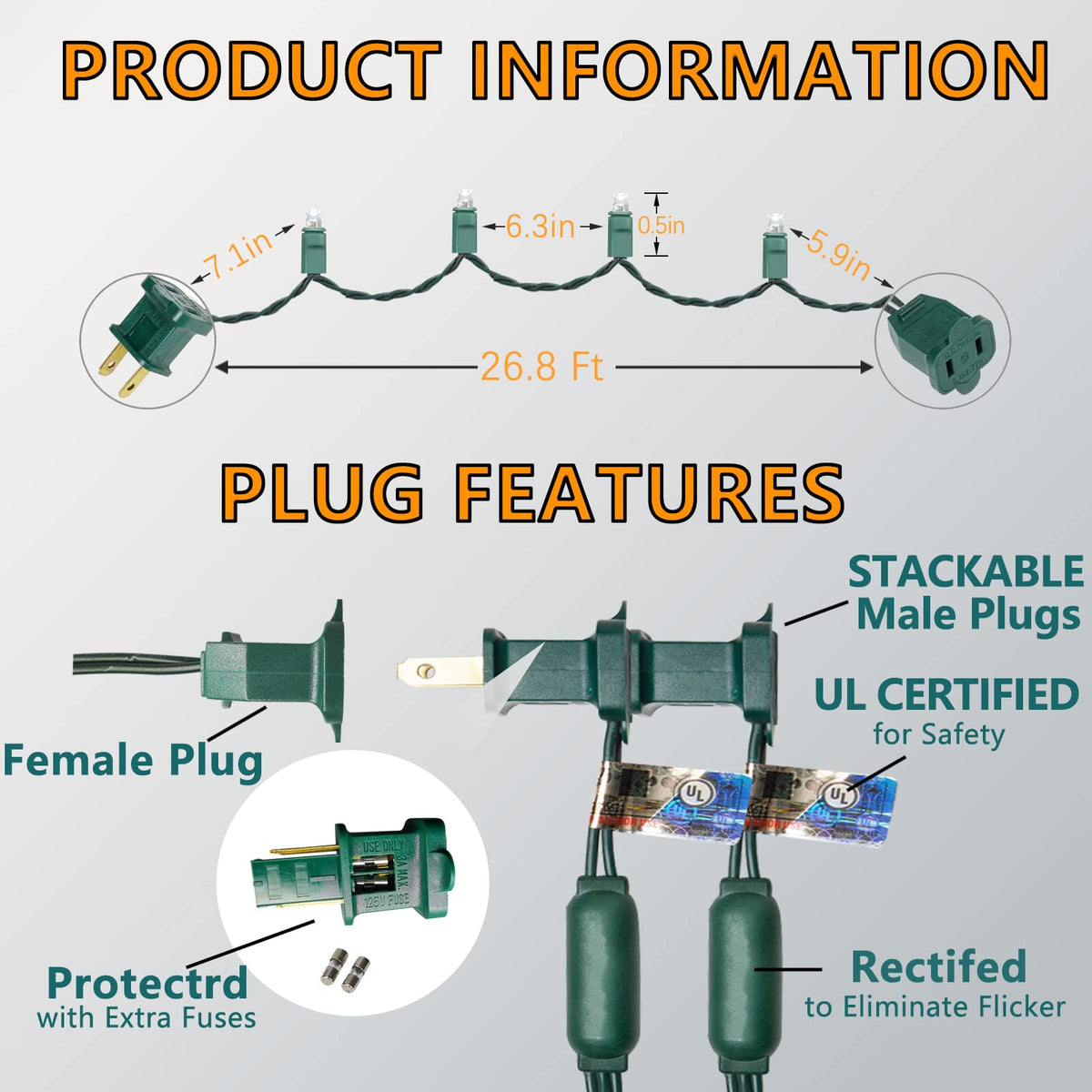 Q: How do I connect multiple sets of these lights together?A: You can easily connect up to 45 sets of the wominoy LED Christmas Lights end to end using a single plug. The light strings come equipped with a stackable male plug and a female plug, allowing for a seamless connection. If one set fails, the others will stay lit, ensuring your display remains consistent.