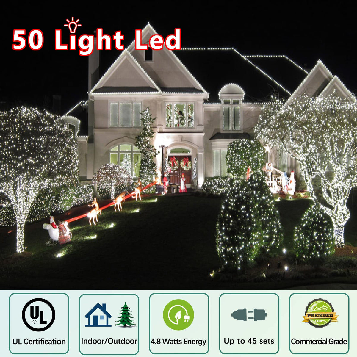 Wominoy 25Ft 50 Counts Cool White Led Christmas Lights - Commercial Grade White Christmas Lights Outdoor Waterproof, Led String