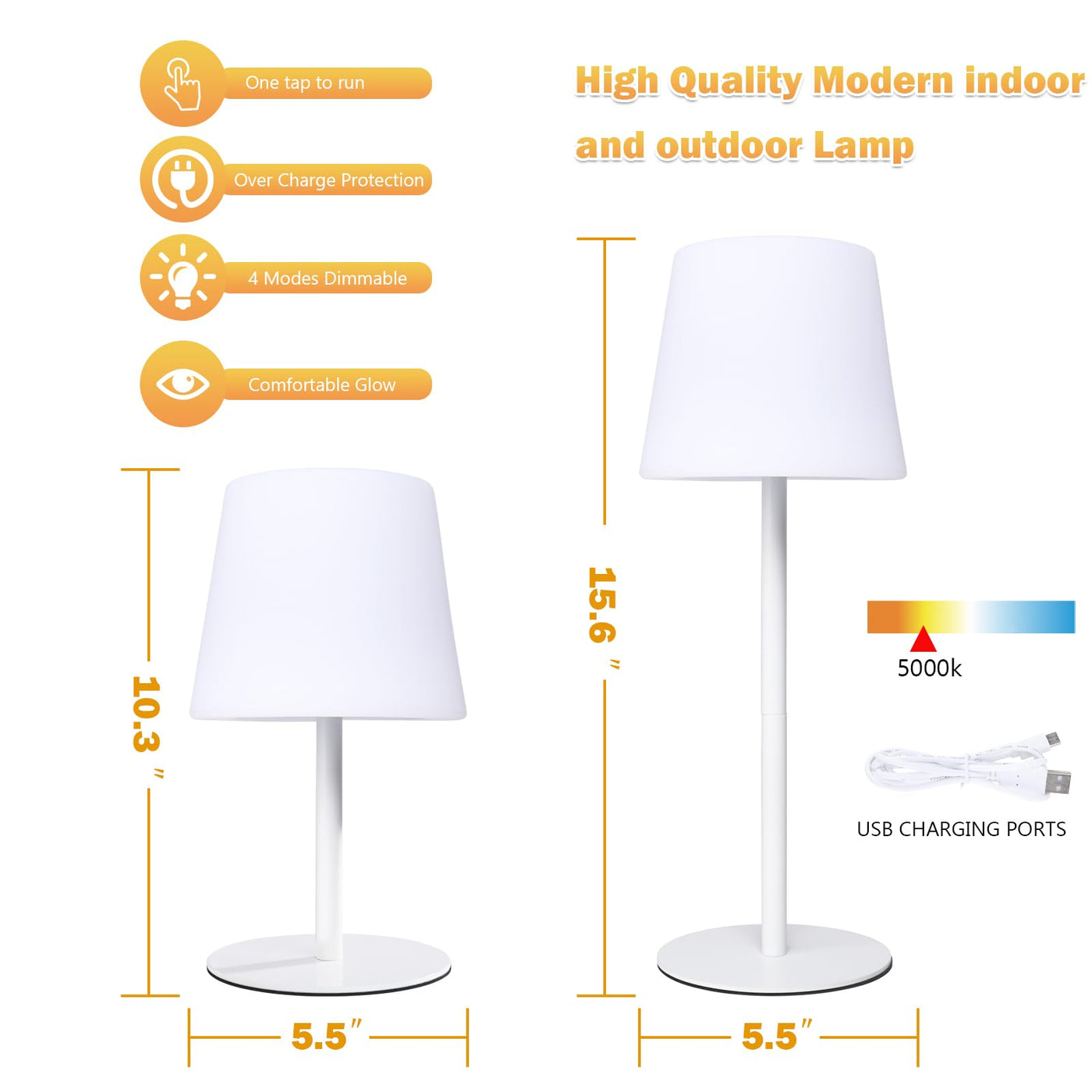 Wonder Solar Outdoor Cordless Lamp 2 Pack, Rechargeable Battery Operated Waterproof Lamp Bedroom Lamps 15.6'', Dimmable Night Li
