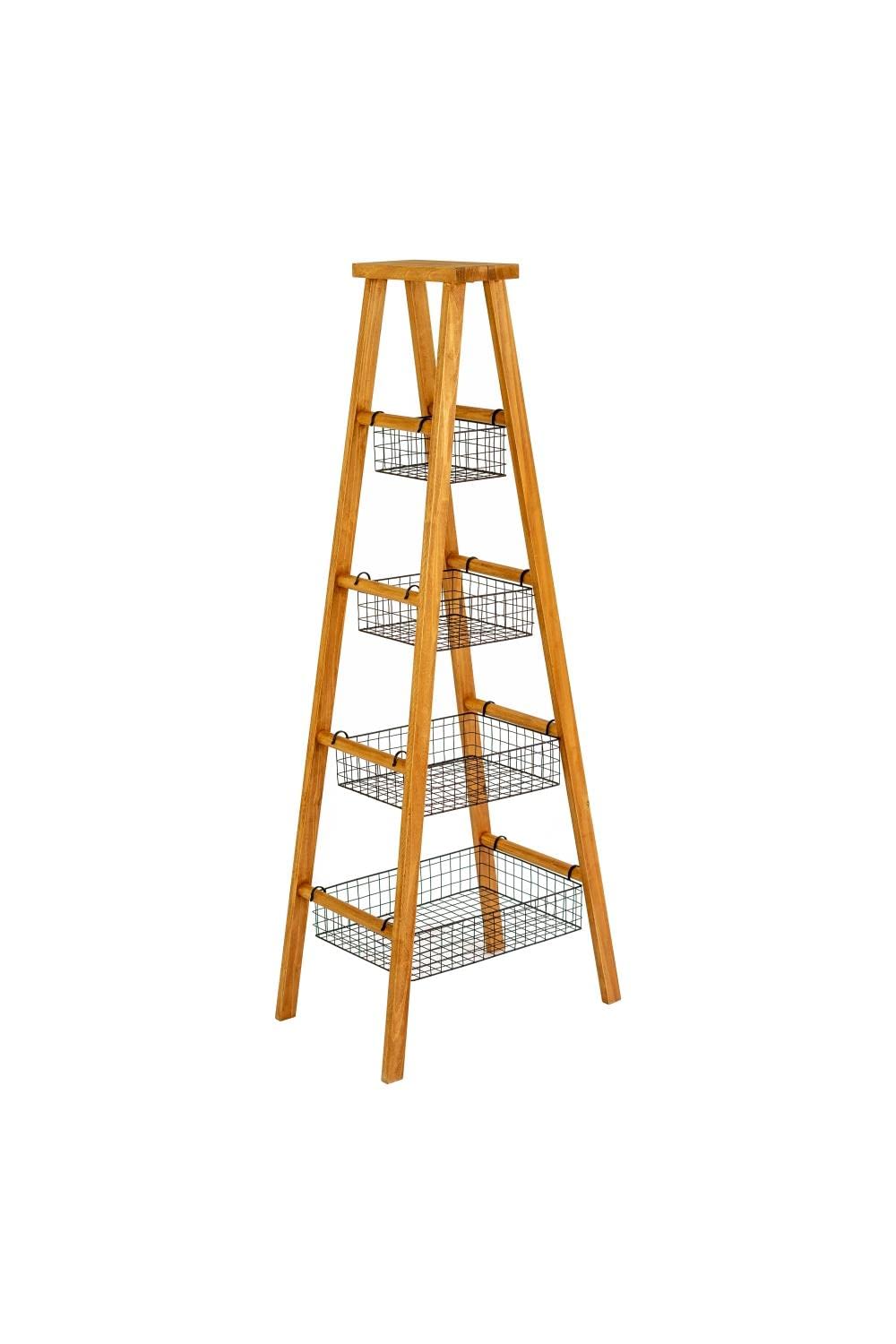 CMN1476 WOODEN LADDER WITH WIRE BASKETS DISPLAY, Where can't you use this is the question? This wire basket display ladder embraces organization with style for personal or commercial use. Removable Shelves for easy storage, Care Instruction : Wipe clean with dry cloth
