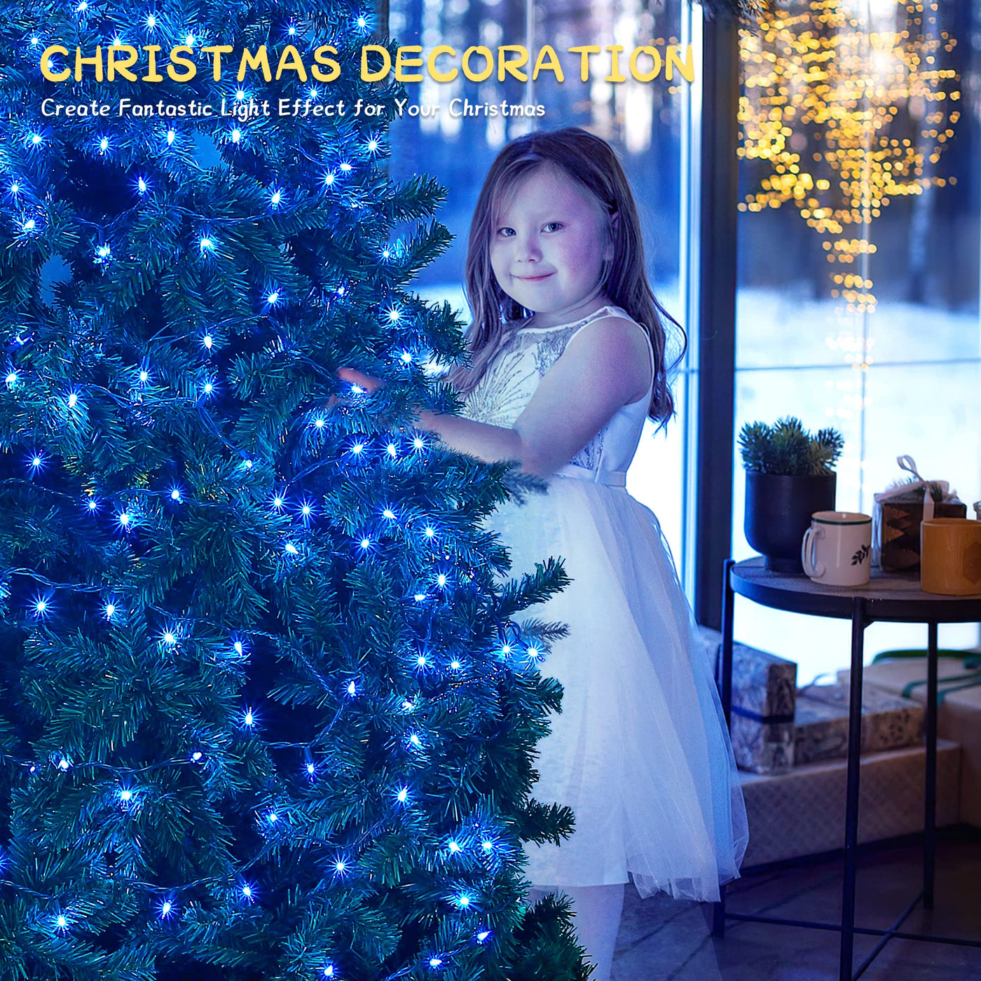 Q: What color are the lights in this product?A: The lights are a bright blue color, making them ideal for festive decorations.
