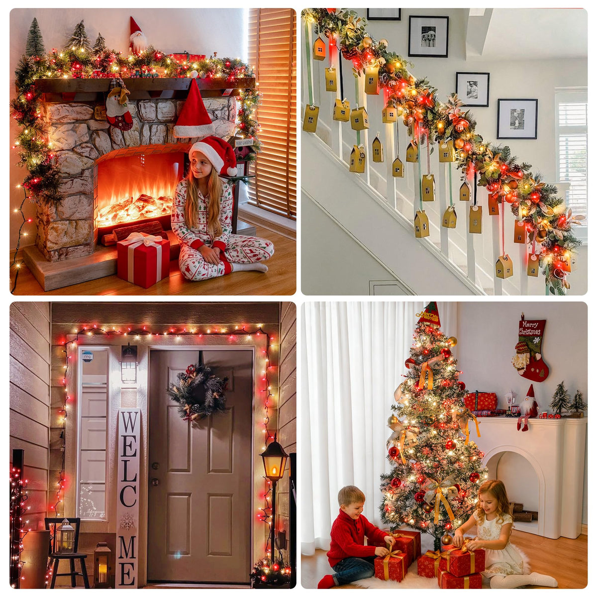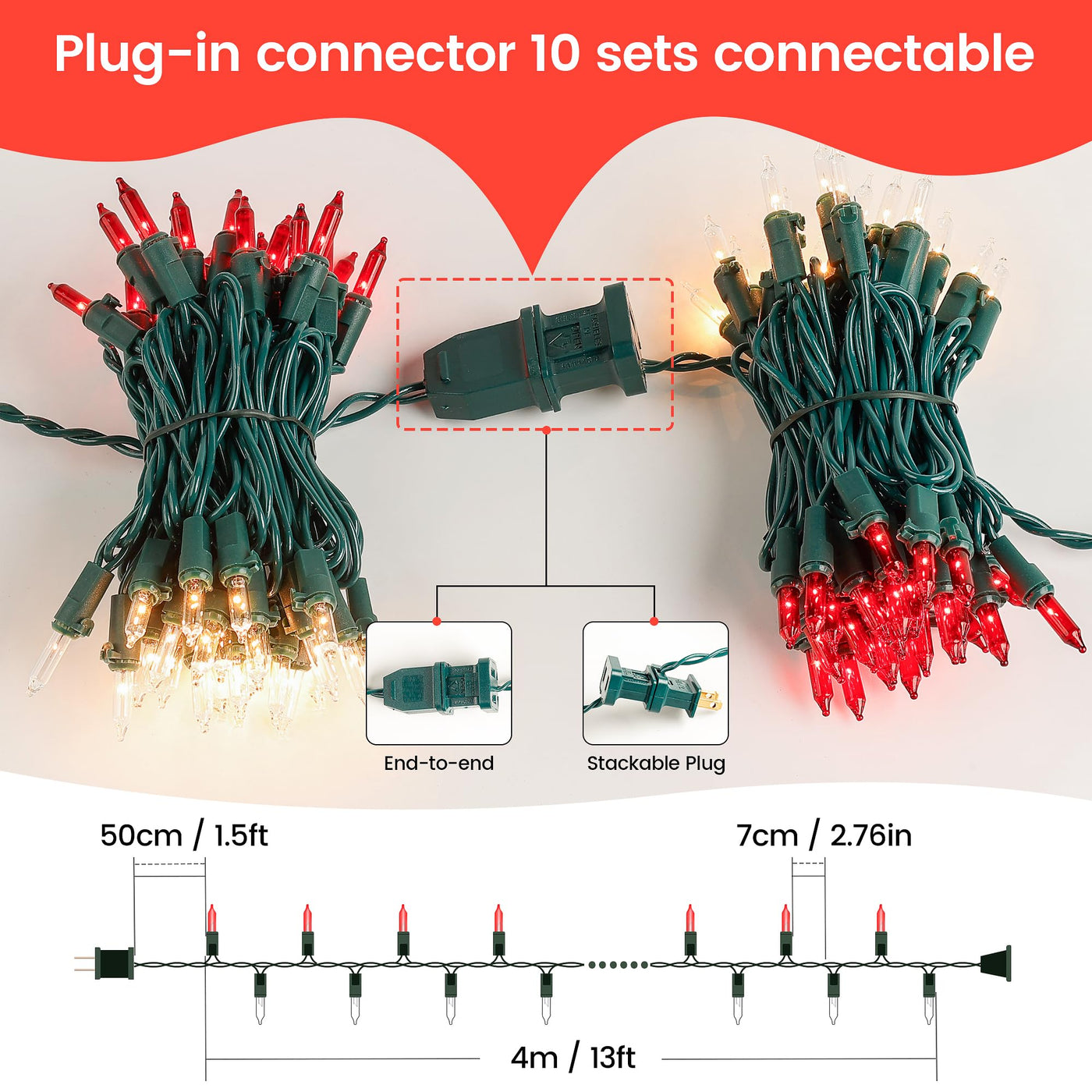 Woohaha Mini Christmas Lights 2 Pack 13Ft String Lights 120V Ul Plug Extendable Xmas Tree Lights For Christmas Patio Home Party Holiday Garden Indoor/Outdoor Decor(50 Count Red Clear)