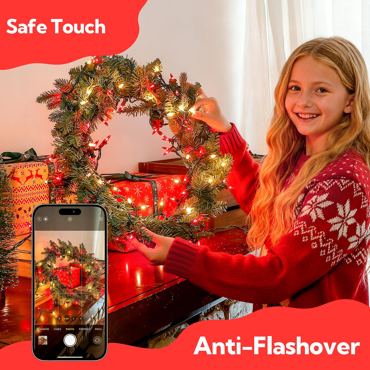 2Pack 50Count 13 Feet Red And Clear Warm Chritmas Lights