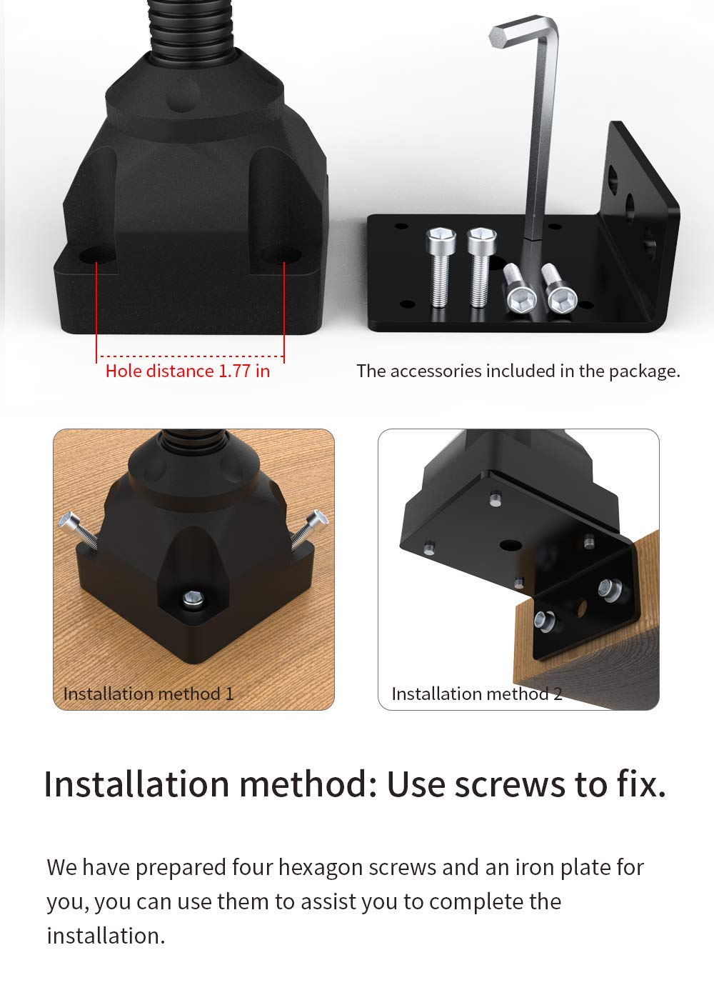 Convenience: ABS four-hole screw fixing seat and matching screw iron parts can be more firmly installed in the desired position from the user, the design is more suitable.