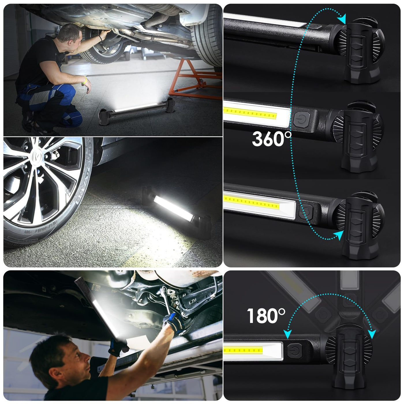 Q: Is the Work Light durable and suitable for tough working conditions?A: Absolutely! The Work Light is designed with a military-grade full-black ABS shell, rugged rubber, and an over-molded lens cover, making it resistant to impacts and wear. It is built to withstand the rigors of mechanic tasks and offers increased durability.
