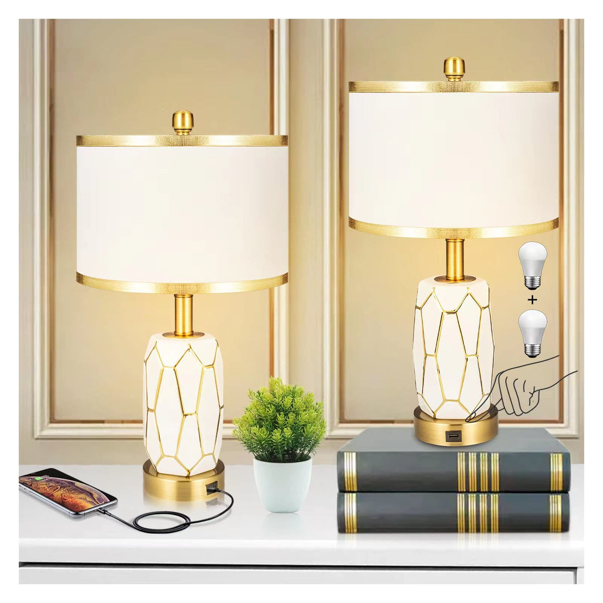 Workluurop Touch Control Ceramic Table Lamps Set Of 2, Usb Ports, Modern Black/White, 22.5"