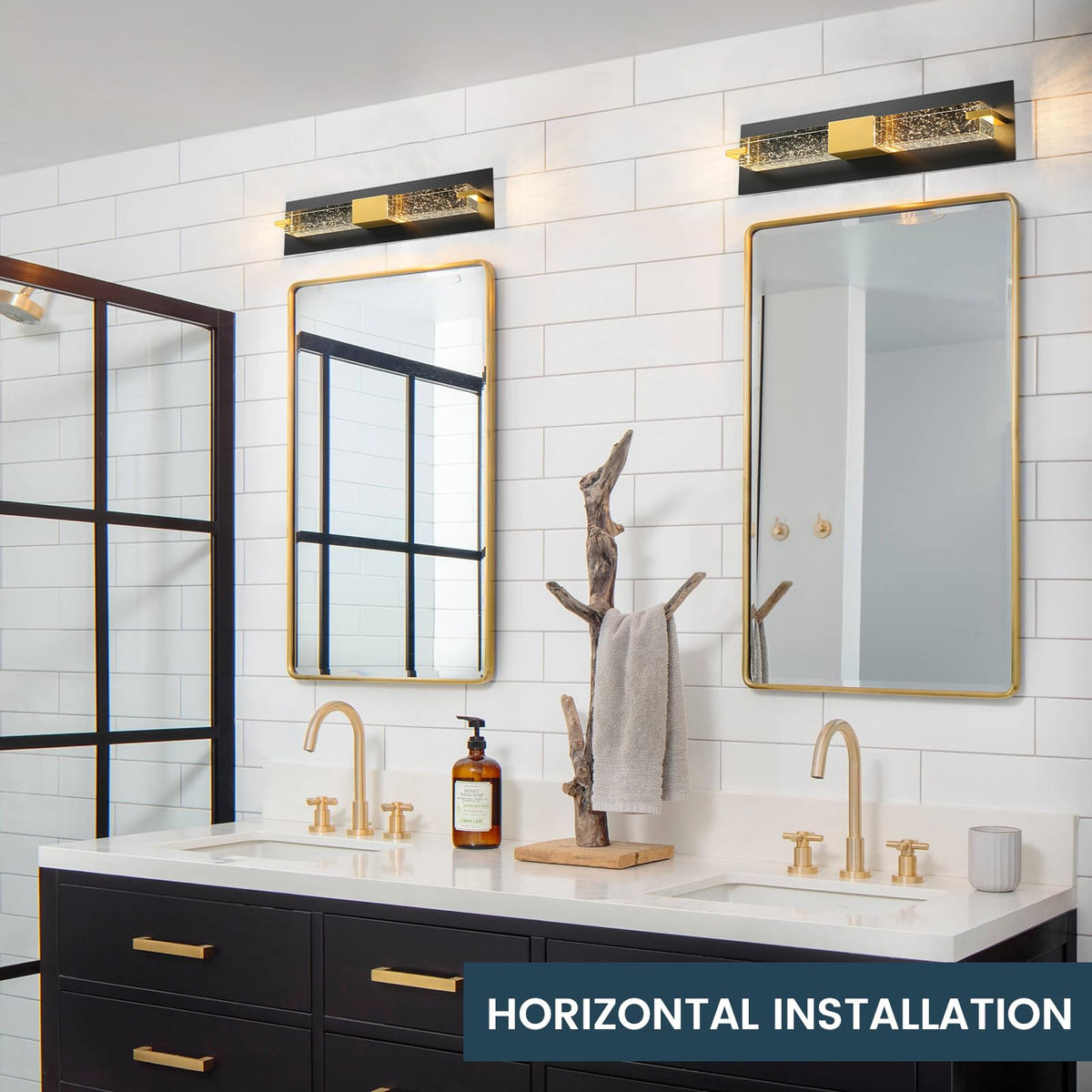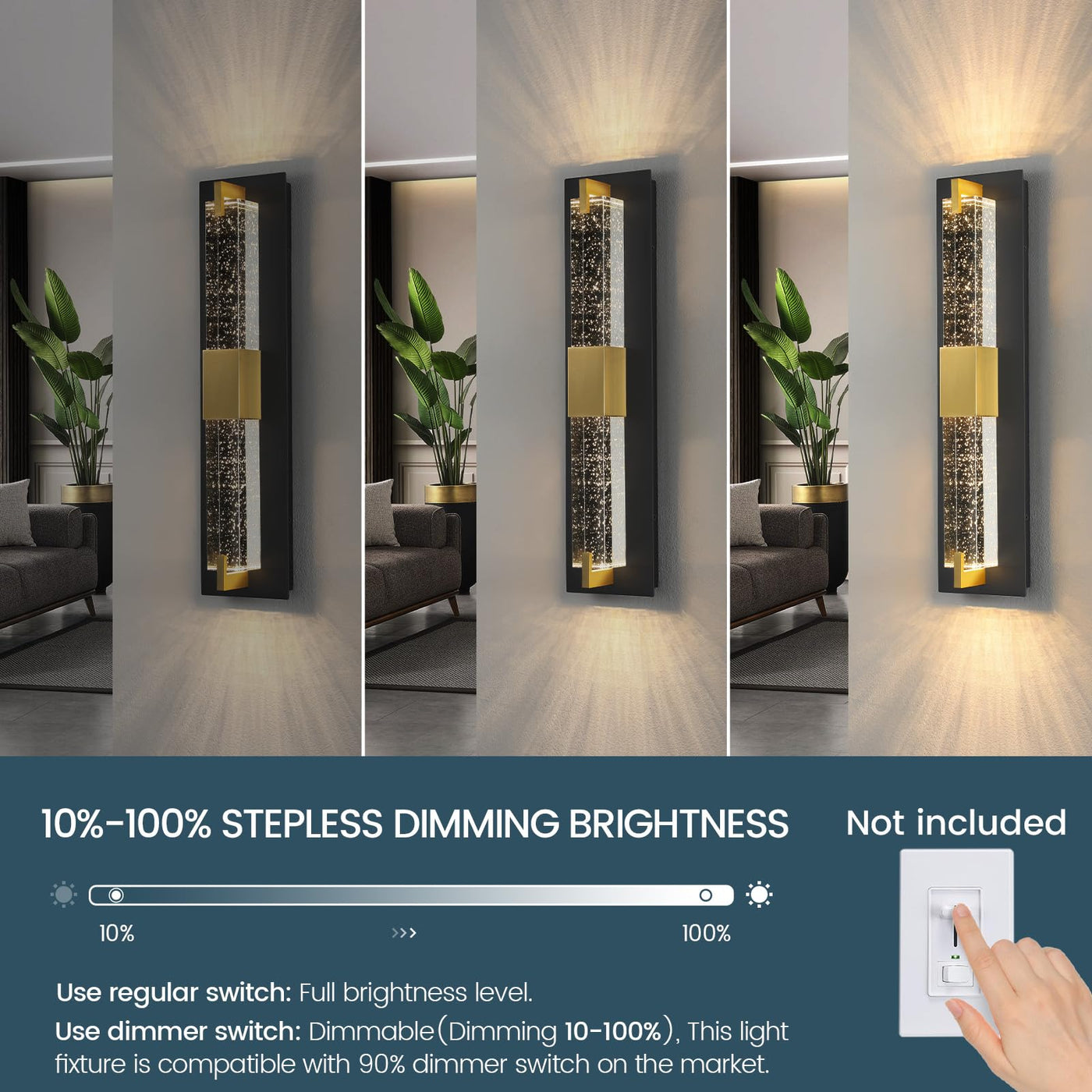 Unique Bubble Lighting - This Modern Wall Sconce has applied crystal glass technology, and imitated champagne bubbles frozen in the ice when the wall lamp is on, That disperses the light perfectly which coming from the integrated LED bulbs, to bring you a unique visual experience Dimmable & LED Wall Sconce - The Crystal Sconce Included 14 watts LED (1120 Delivered Lumens, 3000K Warm White, 10-100% Stepless dimming adjust, Over 50000 hours of working life)to last longer and make energy saving(No bulbs required), LED fixture will last 10-50 times longer than traditional lighting products; ETL Approved in US and CA Dimensions - The Bathroom Sconces' dimension is H 19.3''*L 4.7''*W 3.15'', Weight: 8.3 lb(so you will have to install it on a wall that can support it) Modern Design & Wide Application - Classy and Modern Gold Sconce is widely used in TV walls, living rooms, bedrooms, stairs corridors, bathroom over mirror and bathtub, Very suitable for Christmas, Thanksgiving, for friends, men, women gift Easy Installation - Hardwired, The wall sconces indoor with USA standard backplate-match the junctions is a 4-inch square box, It can be installed by one person in 15 minutes, No on/off switch, No plug, Can be mounted in both vertical and horizon directions as needed Quality Service - If Wall Light Fixtures has any defect, we will provide replacement, We also provide excellent customer service and support to help you with any questions or concerns, Whether you're looking to add style to your home or enhance your lighting experience, this bedroom lights for wall is the perfect choice