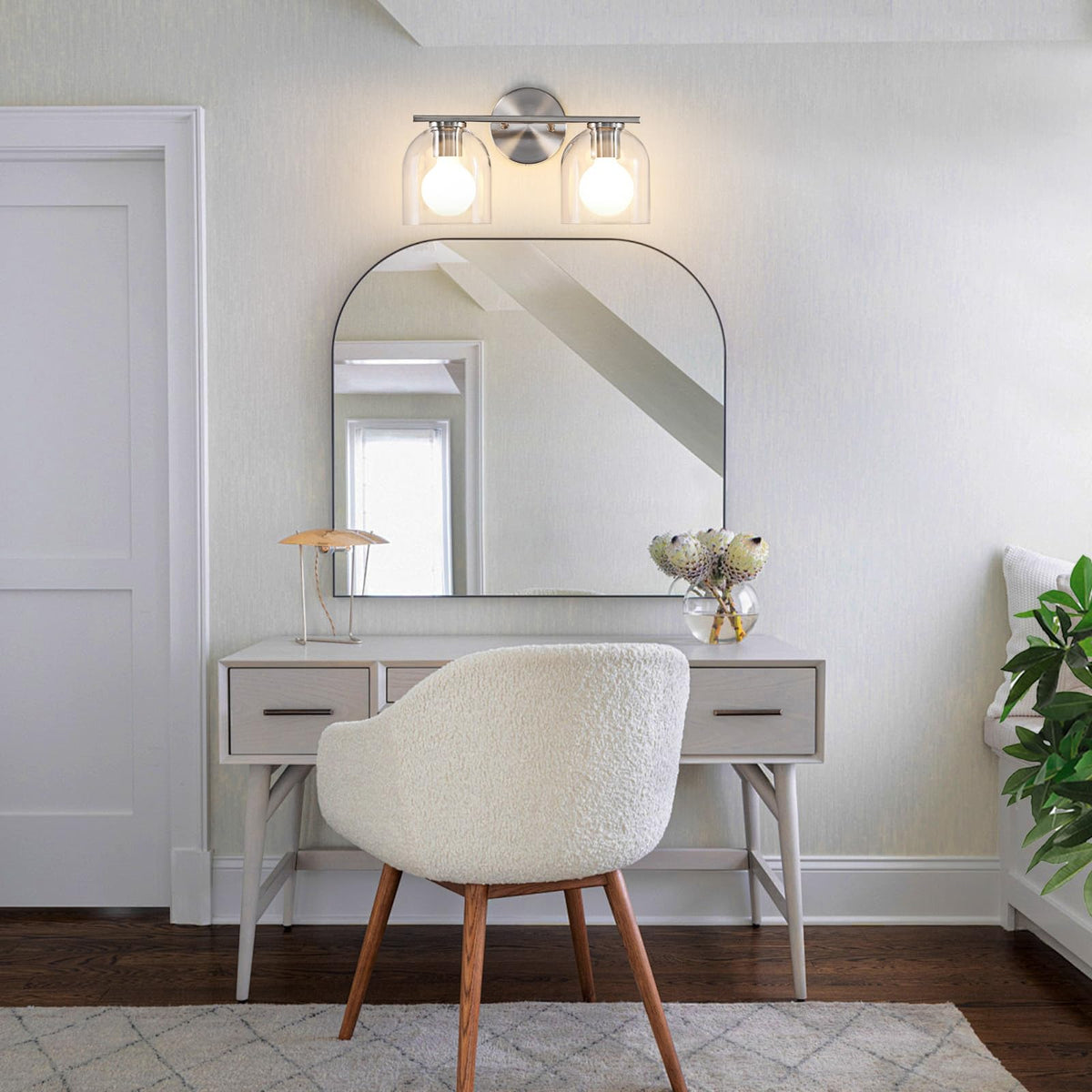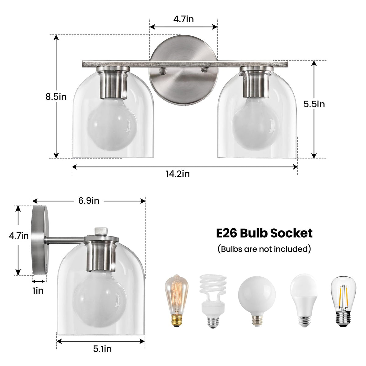 Reasons to choose WOSHITU's new bathroom vanity light: 1. The lamp frame is made of high-quality aluminum, which is sturdy and durable. The surface is electroplated or painted to form a matte black or brushed finish, which is both beautiful and rust-proof, extending the service life of the lamp 2. The transparent lampshade is made of high-quality glass, with a thickening process to reduce the risk of damage during transportation. You can buy it with confidence (if an accident occurs, we will provide you with a free replacement lampshade) 3. The bulb base is made of ceramic, which is resistant to high temperatures. You can use it for a long time with more confidence. The E26 model bulb base allows you to use various types of bulbs 4. The bathroom light fixtures package already contains all installation accessories. You can complete the installation quickly after receiving the goods, but the package does not include bulbs and switches. You need to purchase them by yourself. If you purchase dimmable bulbs and dimmer switches, you can use the dimming function of the lamp WOSHITU vanity lighting fixtures always insist on providing high-quality products and excellent after-sales service. If you encounter any problems after receiving the lamp, please leave us a message through the Amazon message box, and we will solve it for you within 24 hours