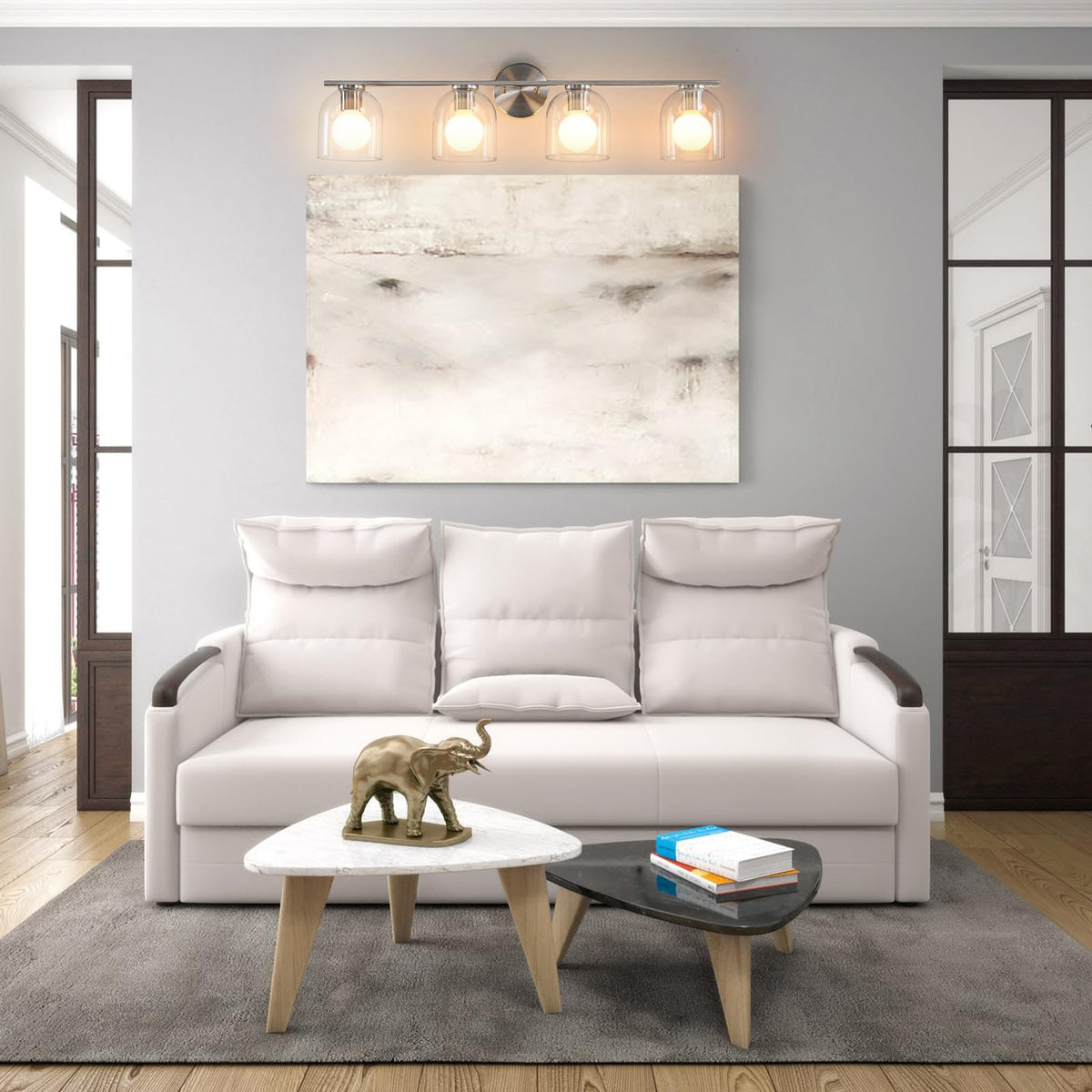 Woshitu Modern Brushed Nickel Bathroom Vanity Lights: 32.3 Inch Over Mirror, 4-Light Fixture With Clear Glass Shade