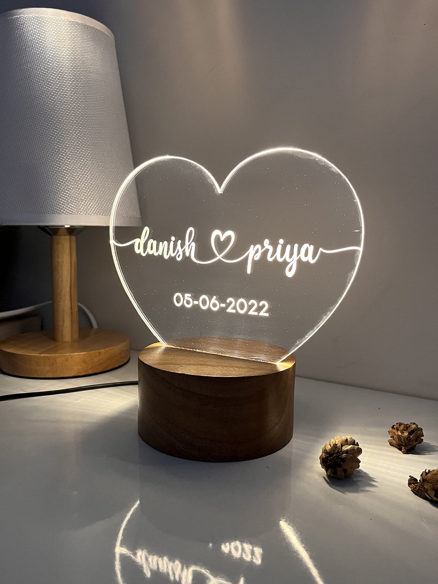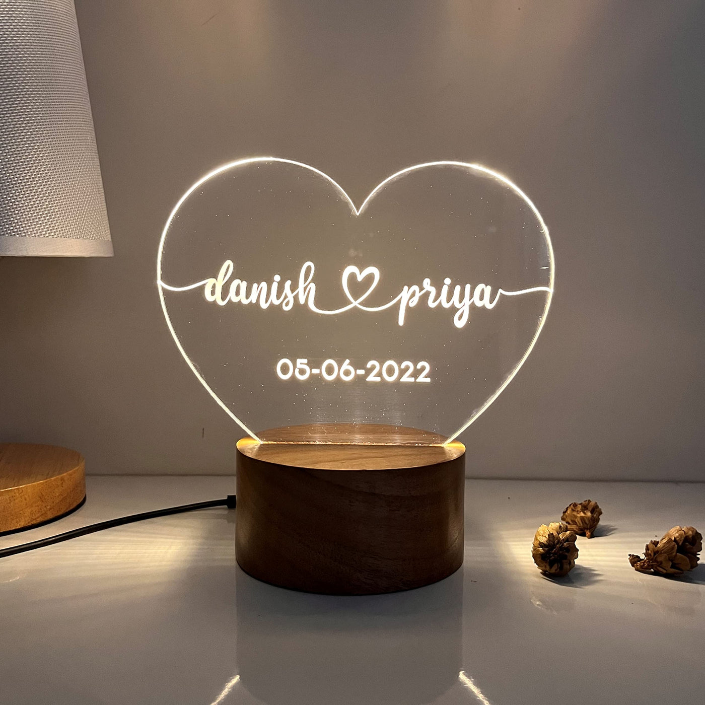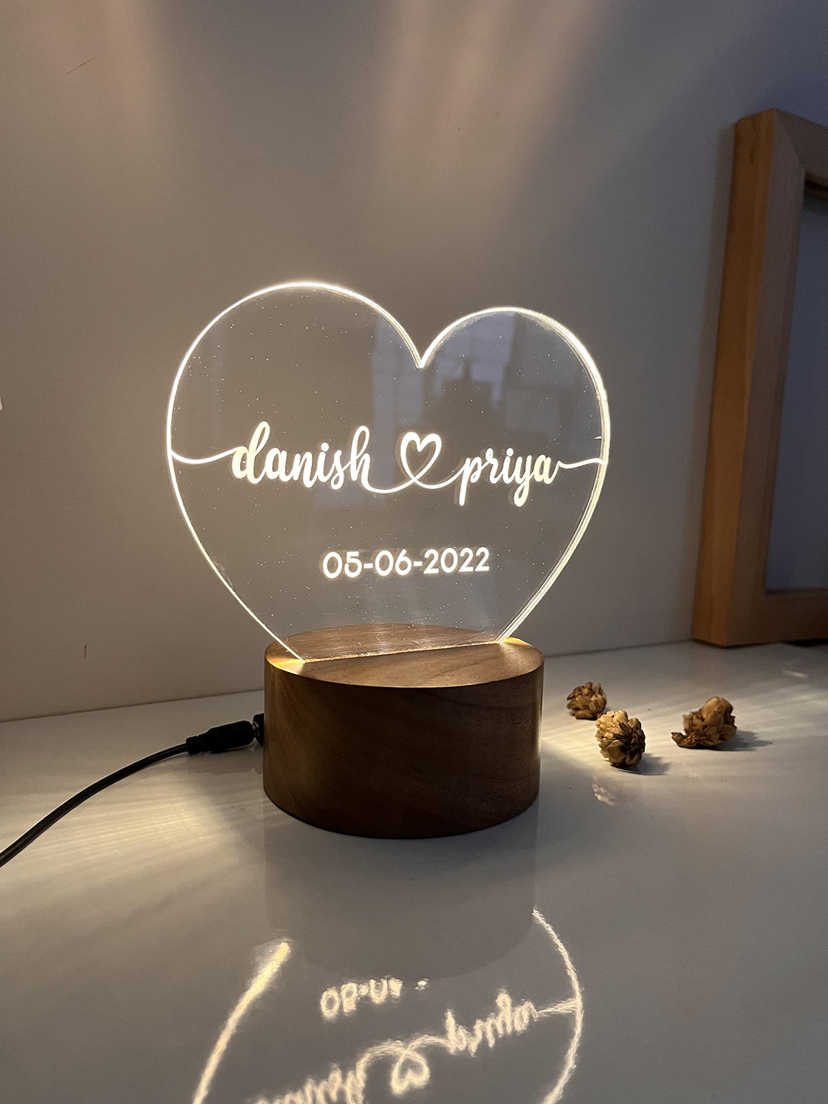WOWOOD Anniversary Gift for Couple Wedding Gift Lamp Love Night Light (Heart Design, Wood, Warm White, Pack of 1) LED