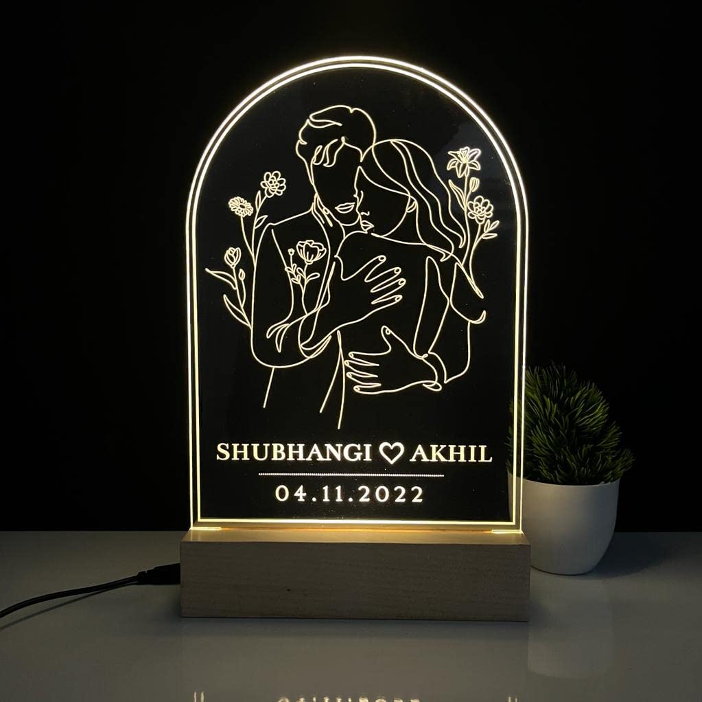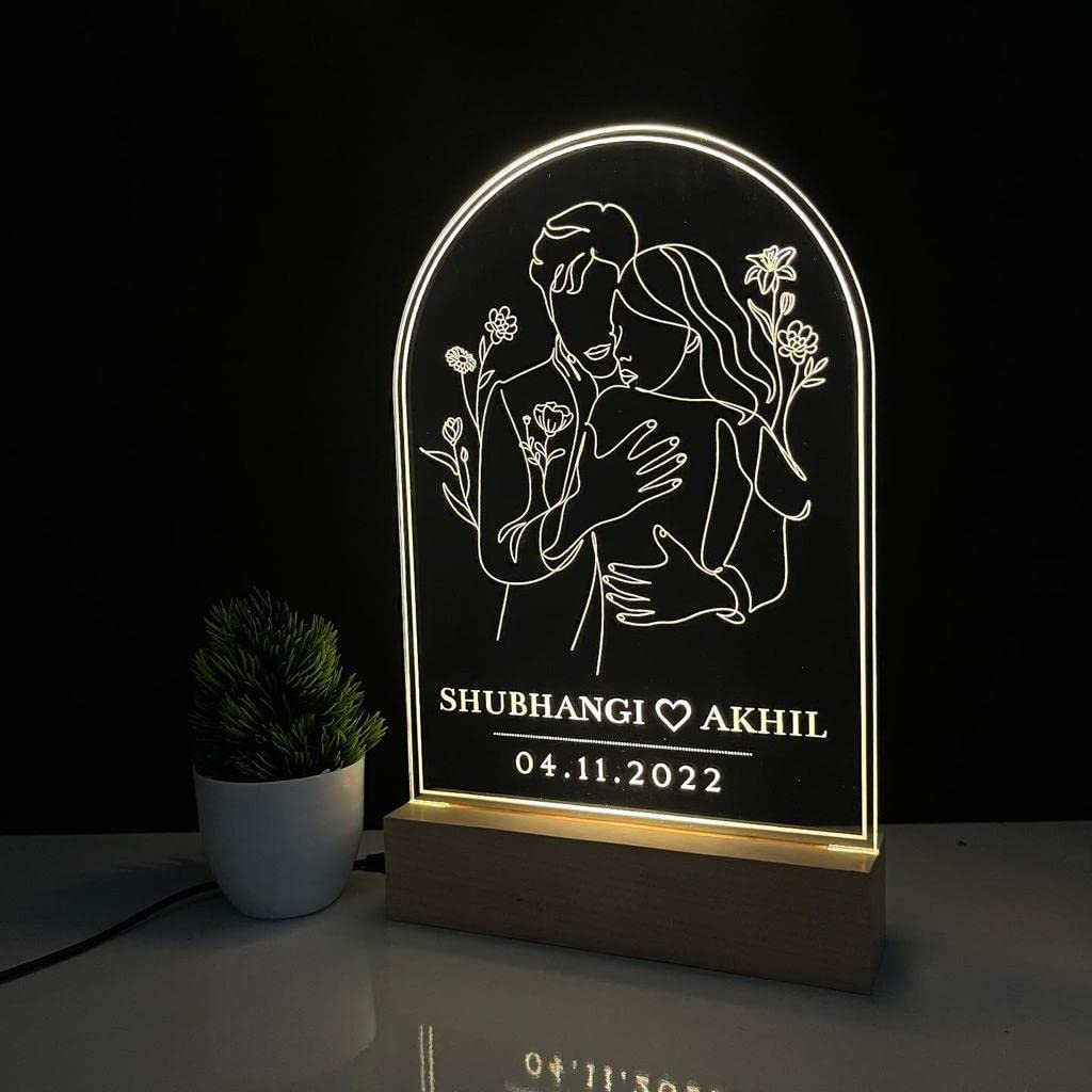 WOWOOD Customized Valentine Gift For Couple Wedding Gift LED Lamp Love Night Light Showpiece (Couple Art, Wood, Warm White, Pack