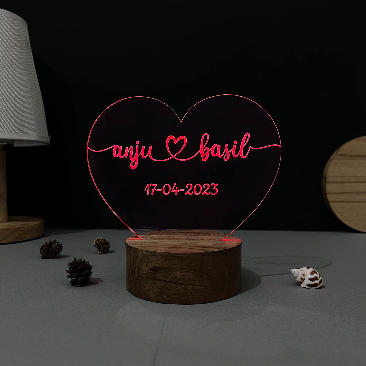 WOWOOD Wood Anniversary Gift For Couple Wedding Gift Lamp Love LED Night Light (Heart Design Multicolor)