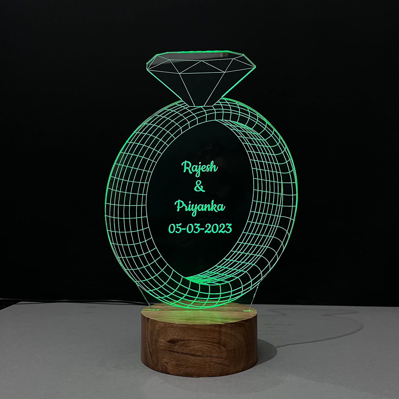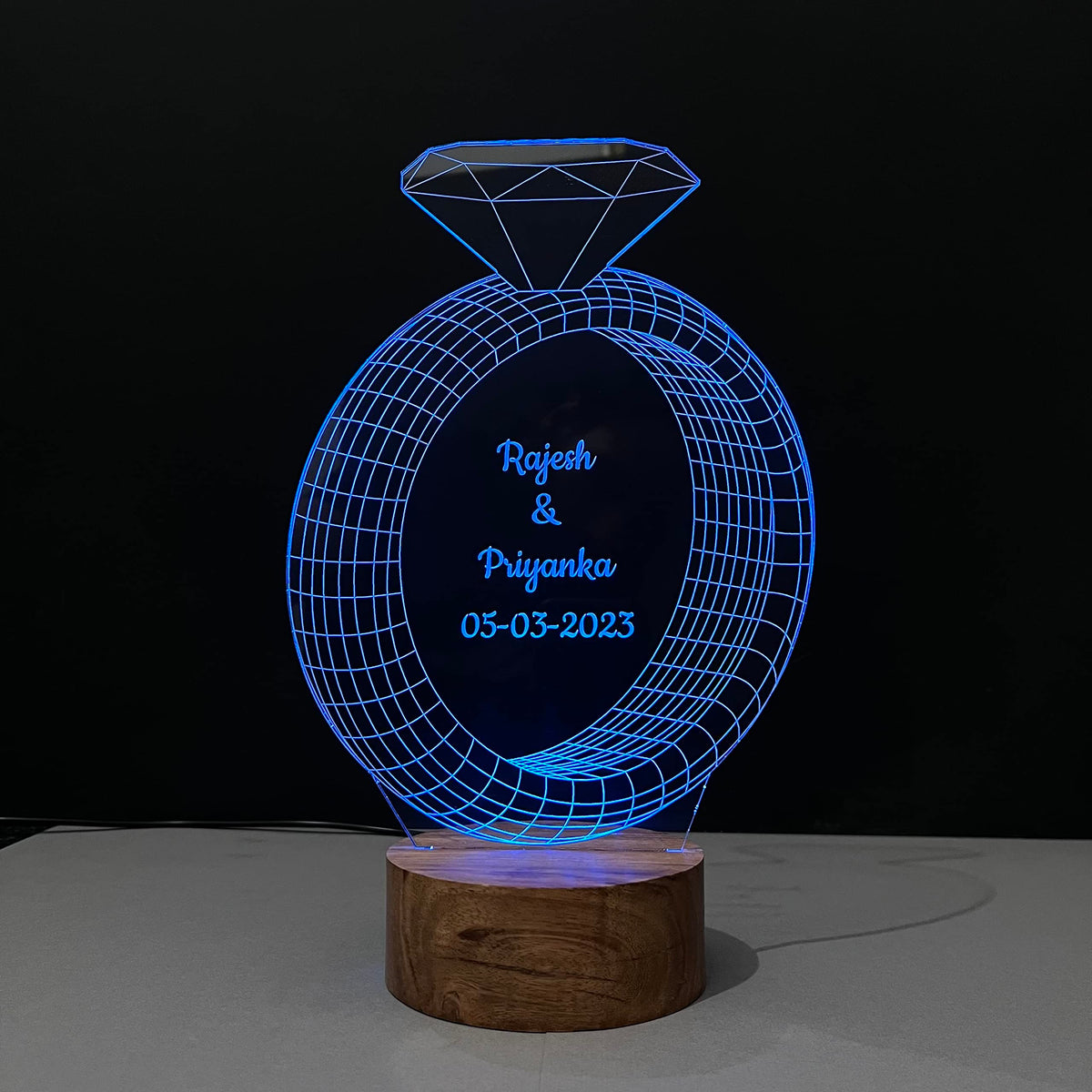 WOWOOD Wood Engagement Ring Lamp Gift For Couple Wedding Anniversary Gift Lamp Love Night Light (Ring Design Multicolor), LED