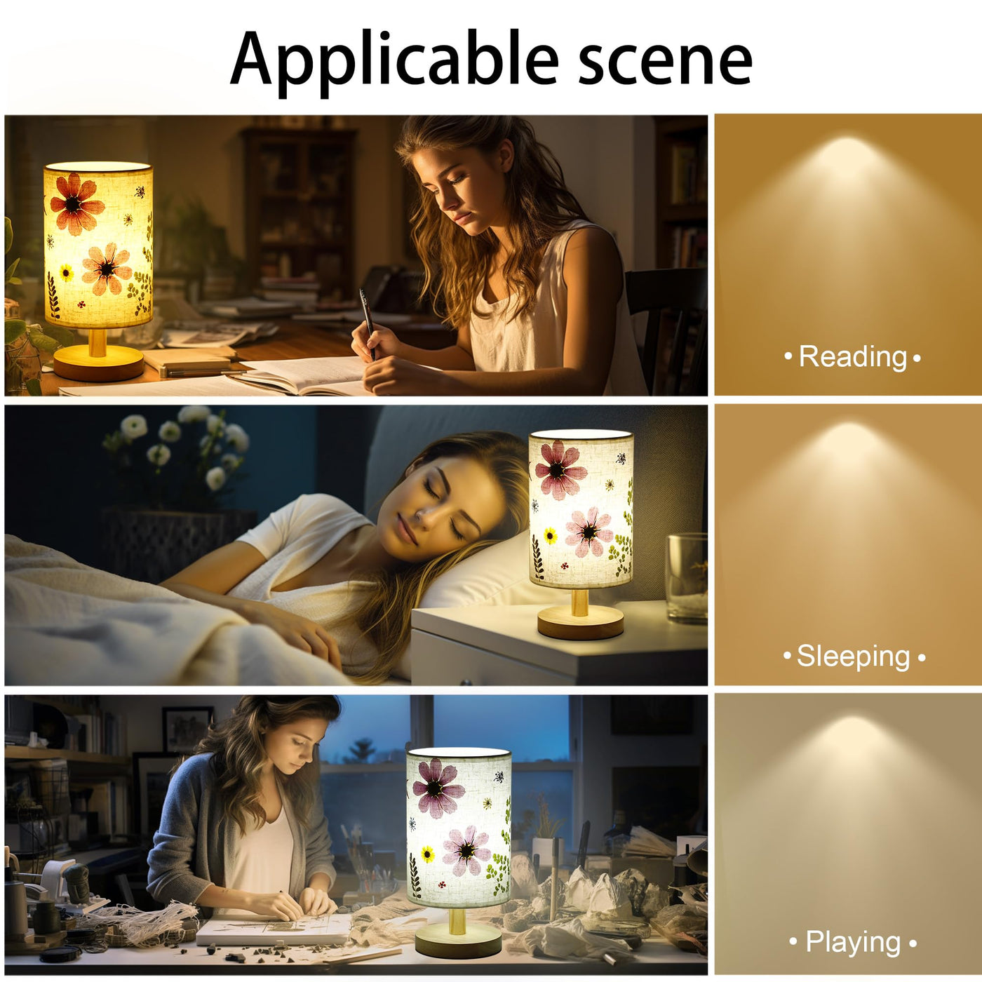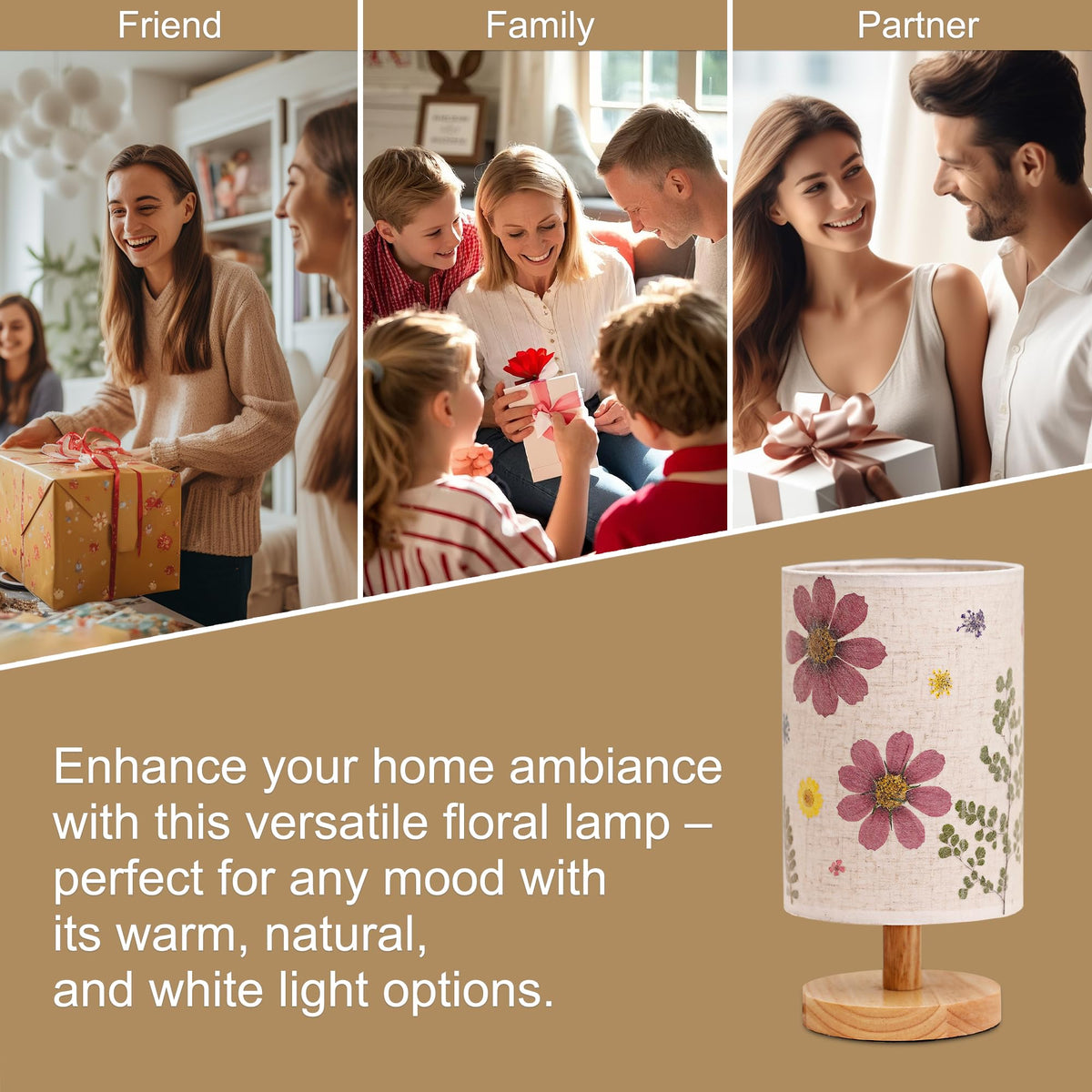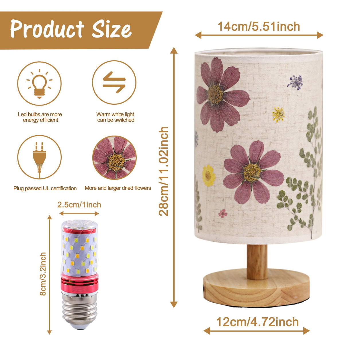 Wsyear Dried Flower Led Aesthetic Table Lamp, Mother'S Day Multi-Way Dimmable Natural Pressed Flower Desk Lamp With Wooden Stand