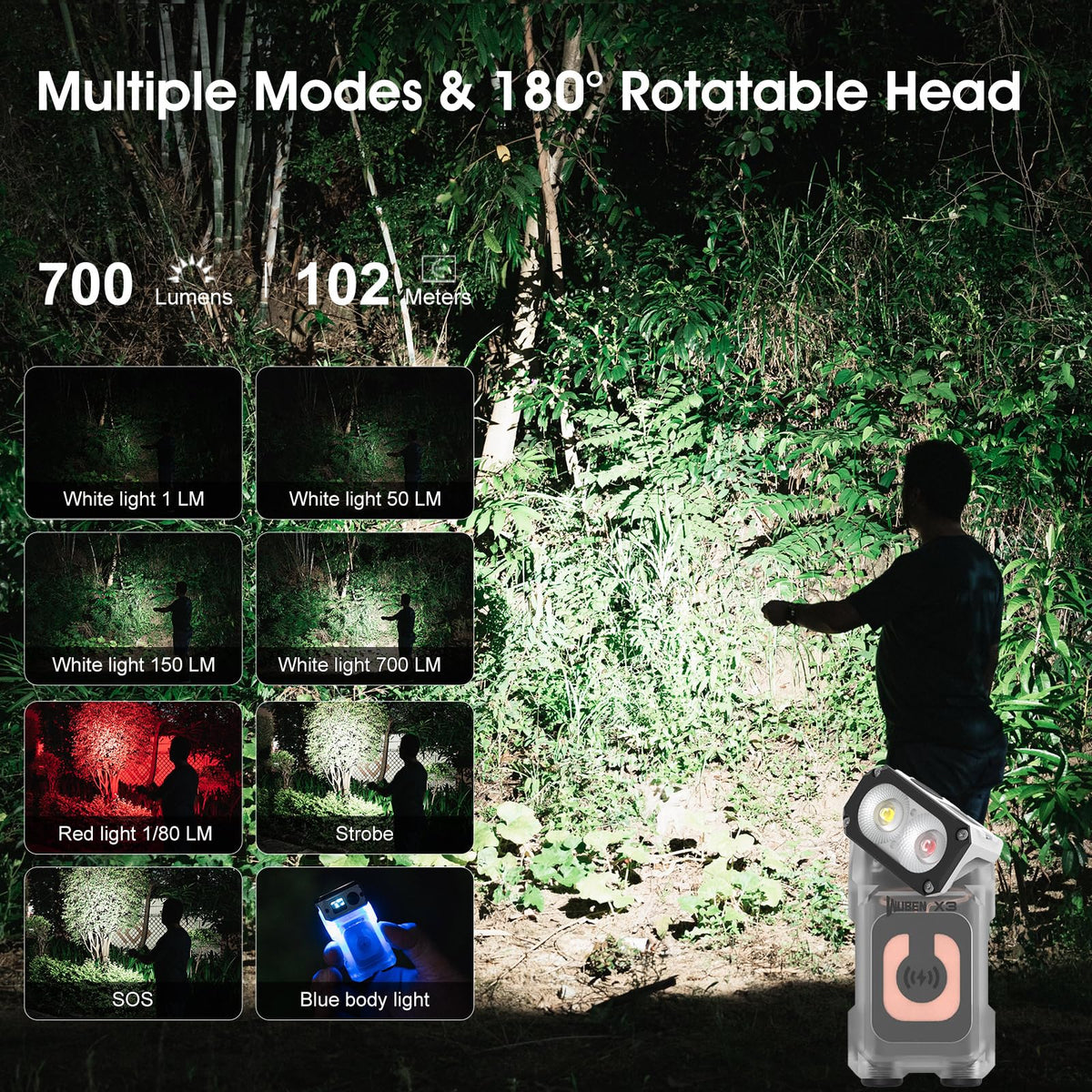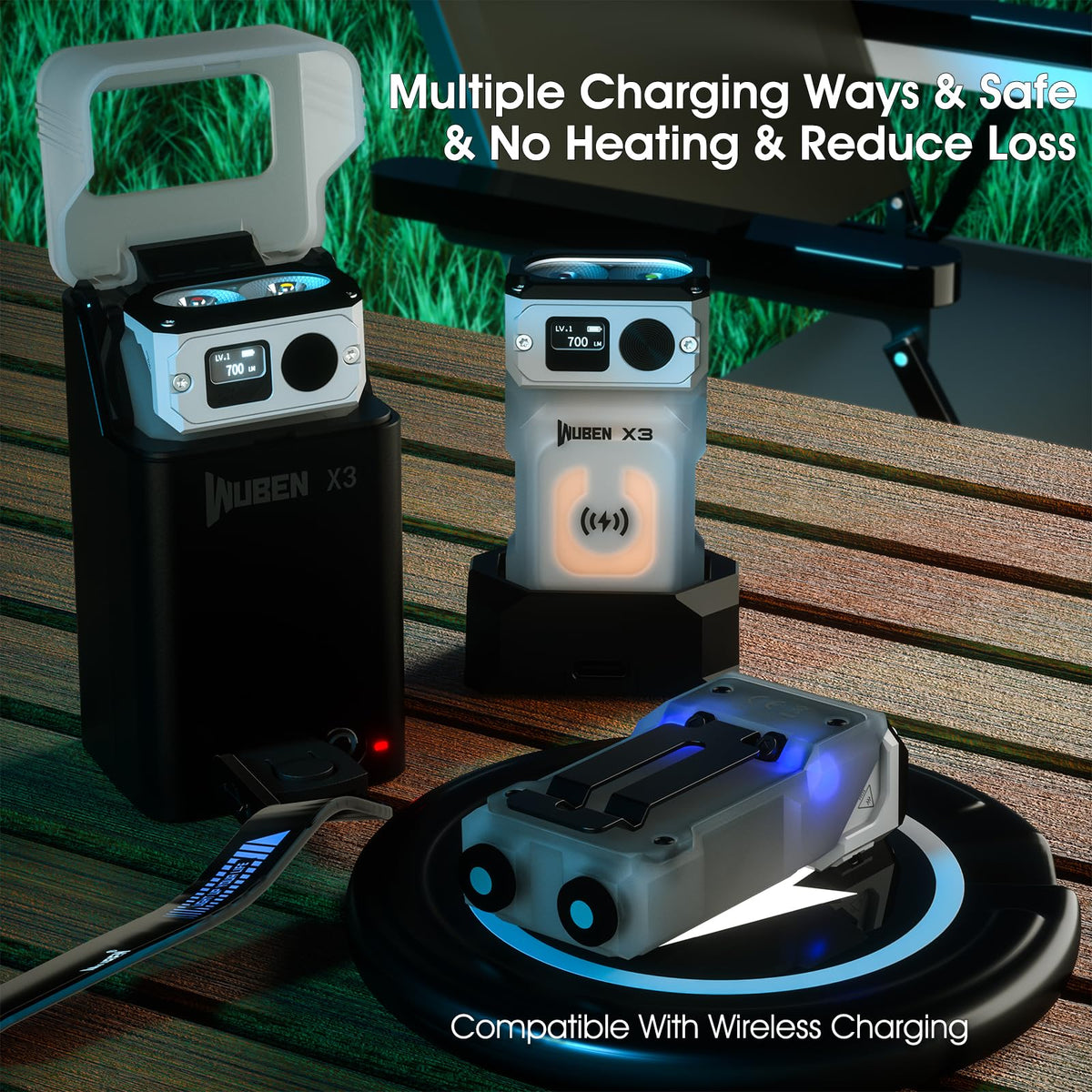Wuben X3 Mini Flashlight With Rechargeable Charging Box 180 Degree Edc Keychain Flashlight Twist Ip65 Waterproof Magnet Pocket Flashlight 10 Mode Type-C Lanyard For Camping, Outdoor, Inspection, Gift