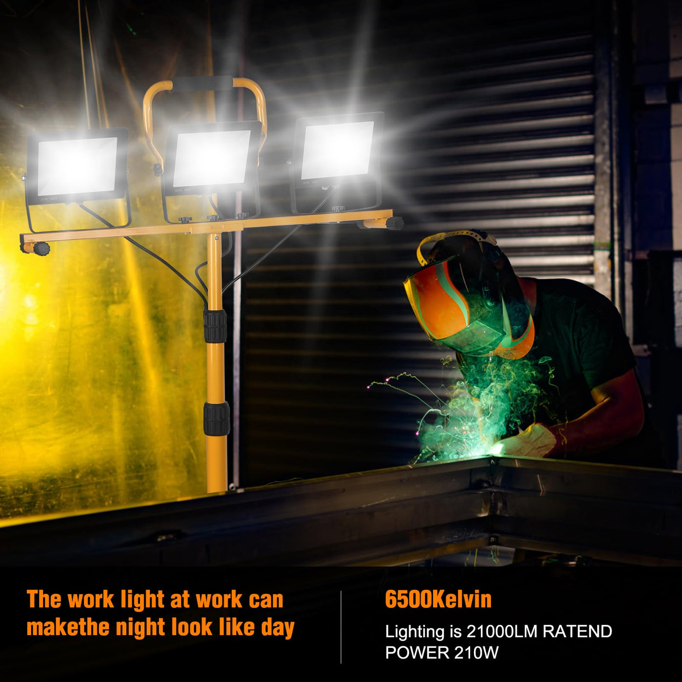 Wufoty Work Light Rugged, Easy To Use, 21,000 Lumen Work Light Stand, 3 Adjustable Led Work Light Heads Collapsible Tripod, 6,50