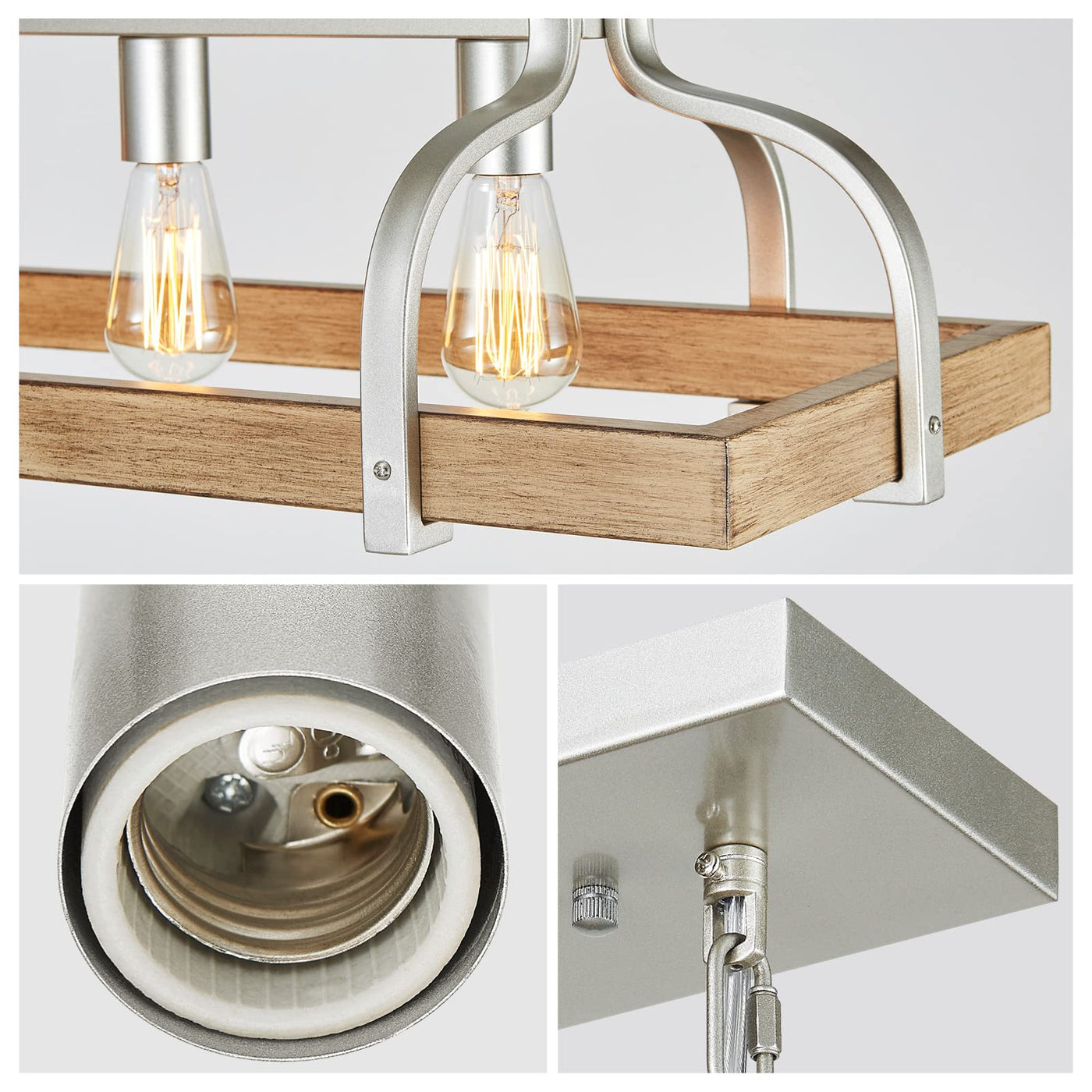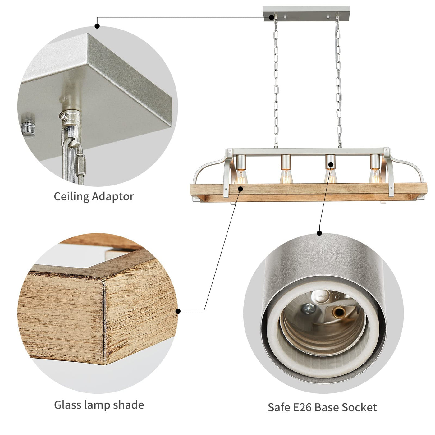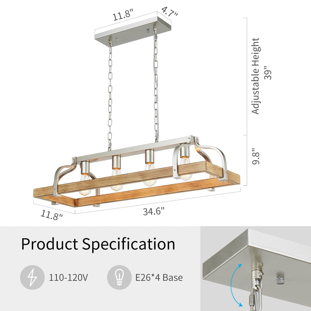 Chandelier Size: 9.8 Inches High, 34.6 Inches Long And 11.8 Inches Wide. Chain: 39 Inches High(Max). Canopy: 4.7 Inches Wide And 11.8 Inches Long. Bulb Base: E12, 120V 60Watts(Max). (*Bulbs Not Included* You Need To Get 4*E26 Led Bulbs Depending On The Lighting Effects You Want). Easy Installation: Assembly Required And Easy To Install, With All Mounting Hardware And A Detailed Mounting Instruction Included. Widely Use: Kitchen Island, Dining Room, Hallway, Living Room, Porch, Hotel, Staircase, Foyer, Bedroom, Office And Etc.
