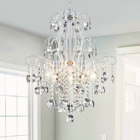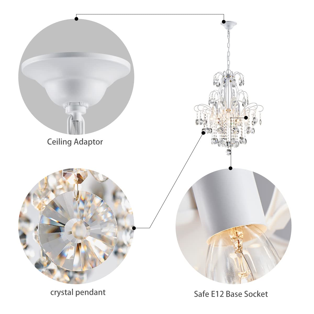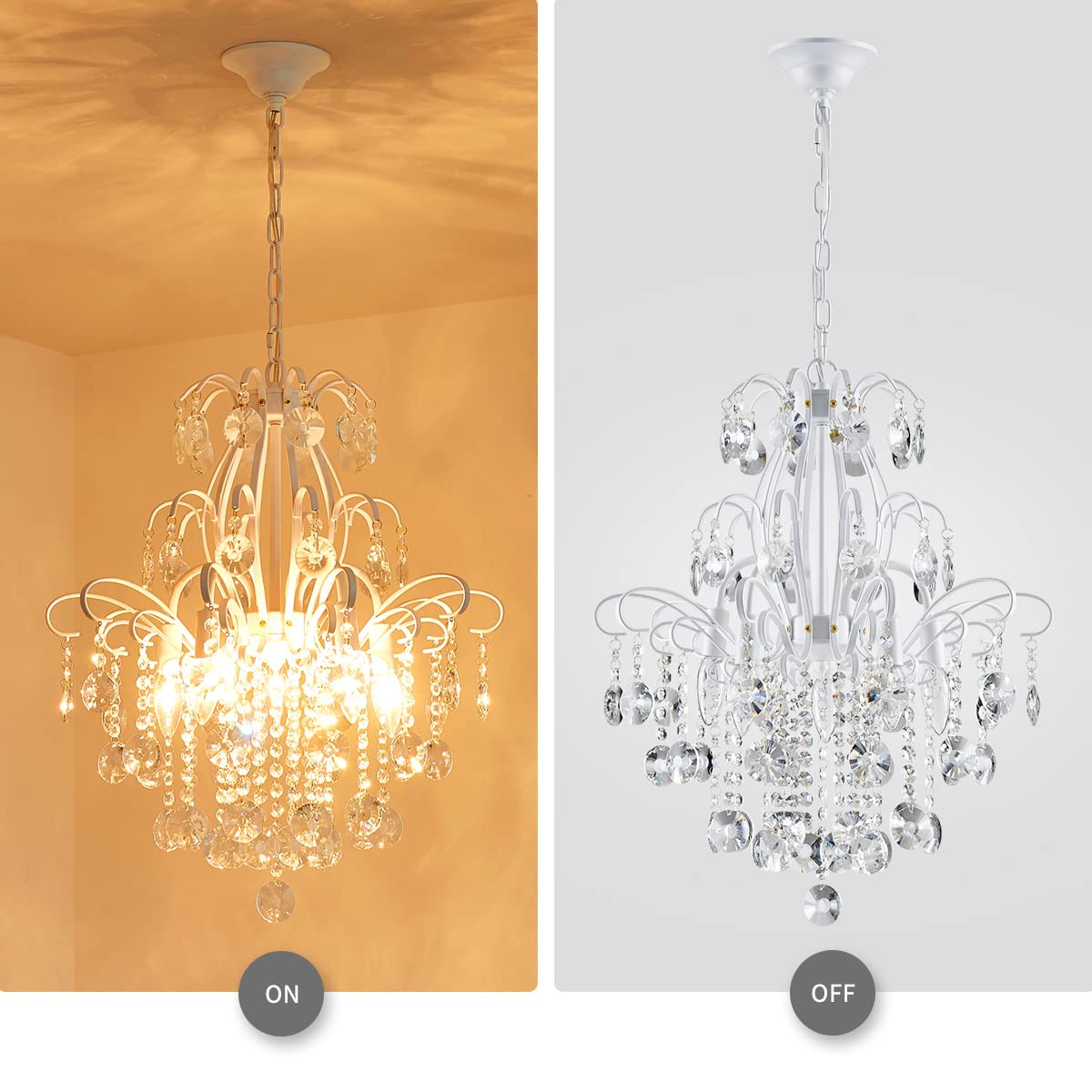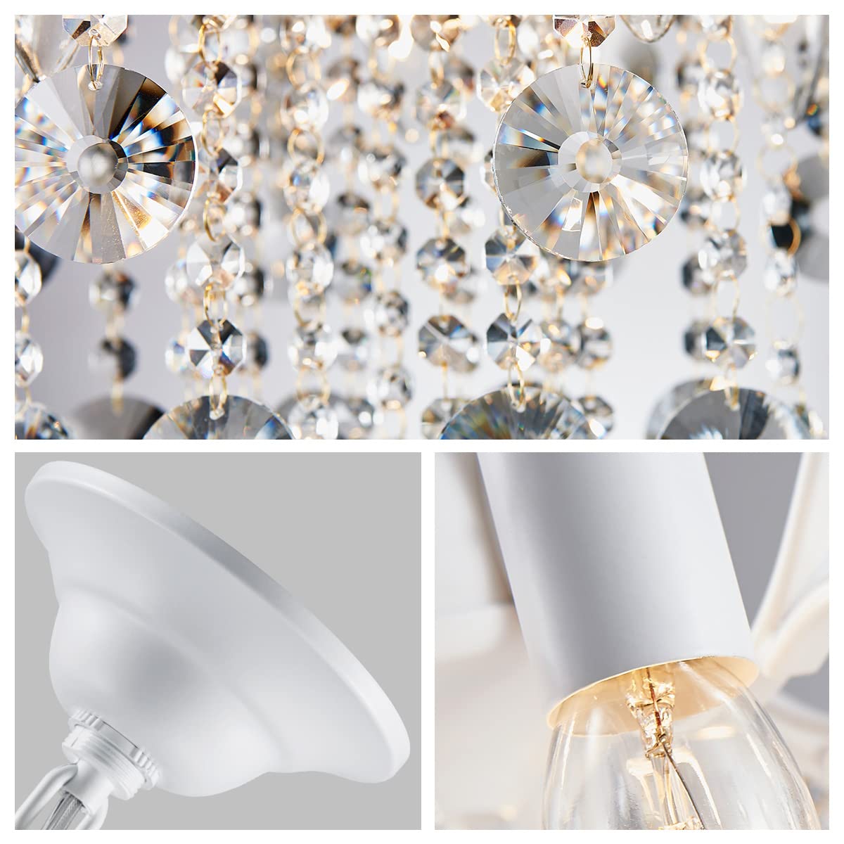 Chandelier Size: 22.6 inches high and 19.2 inches wide. Chain: 39.4 inches high(max). Canopy: 4.7 inches wide. Bulb Base: E12, 120V 40watts(Max). (*Bulbs Not Included* You need to get 5*E12 Led Bulbs depending on the lighting effects you want). Compact Design: Sparkling glass crystals which has a glass touch and feeling make it uneasy to break and could create a superior and classy atmosphere in your room. Easy Installation: Assembly required(include hanging the crystal strings to the silver plate) and easy to install, with all mounting hardware and a detailed mounting instruction included. Widely Use: Hallway, Living Room, Dining Room, Porch, Hotel, Staircase, Island, Foyer, Bedroom, Office and etc.