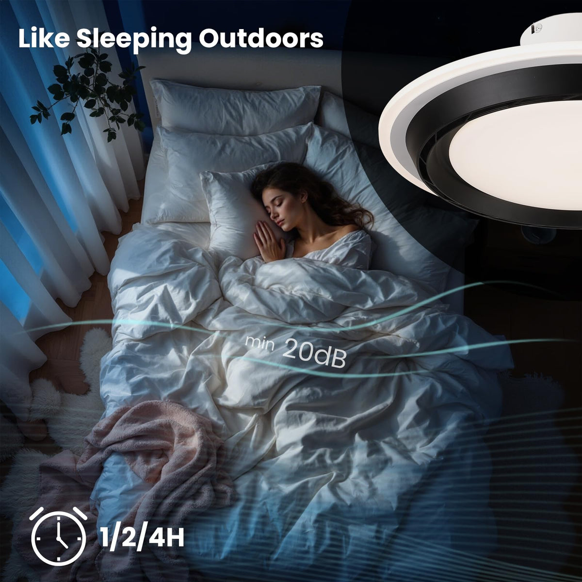 WVMNQO Low Profile Ceiling Fan with Light - Bladeless Modern E26 Socket Fan Light, Remote Control with Memory Function, 4 Speeds 28dB, Dimmable 3000K-6000K