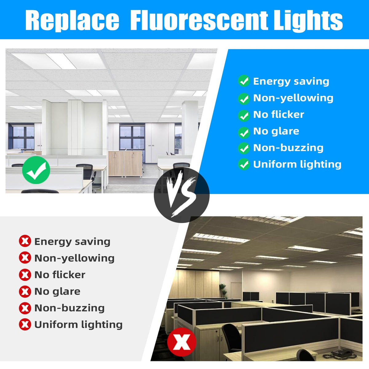 ?Easy Installation: Lightweight design with a well-made internal driver allows for quick and straightforward installation, ideal as drop ceiling lights.