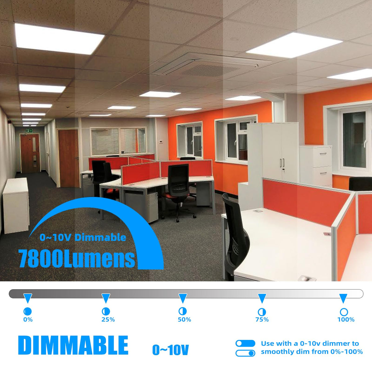 ?0-10V Dimmable: Offers seamless dimming capabilities for maximum eye comfort, providing instant bright light without buzzing or flickering.