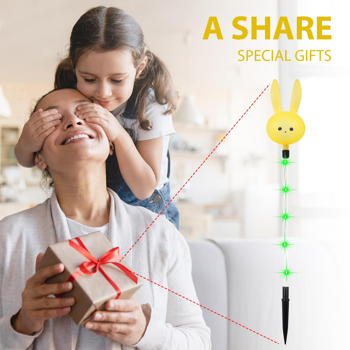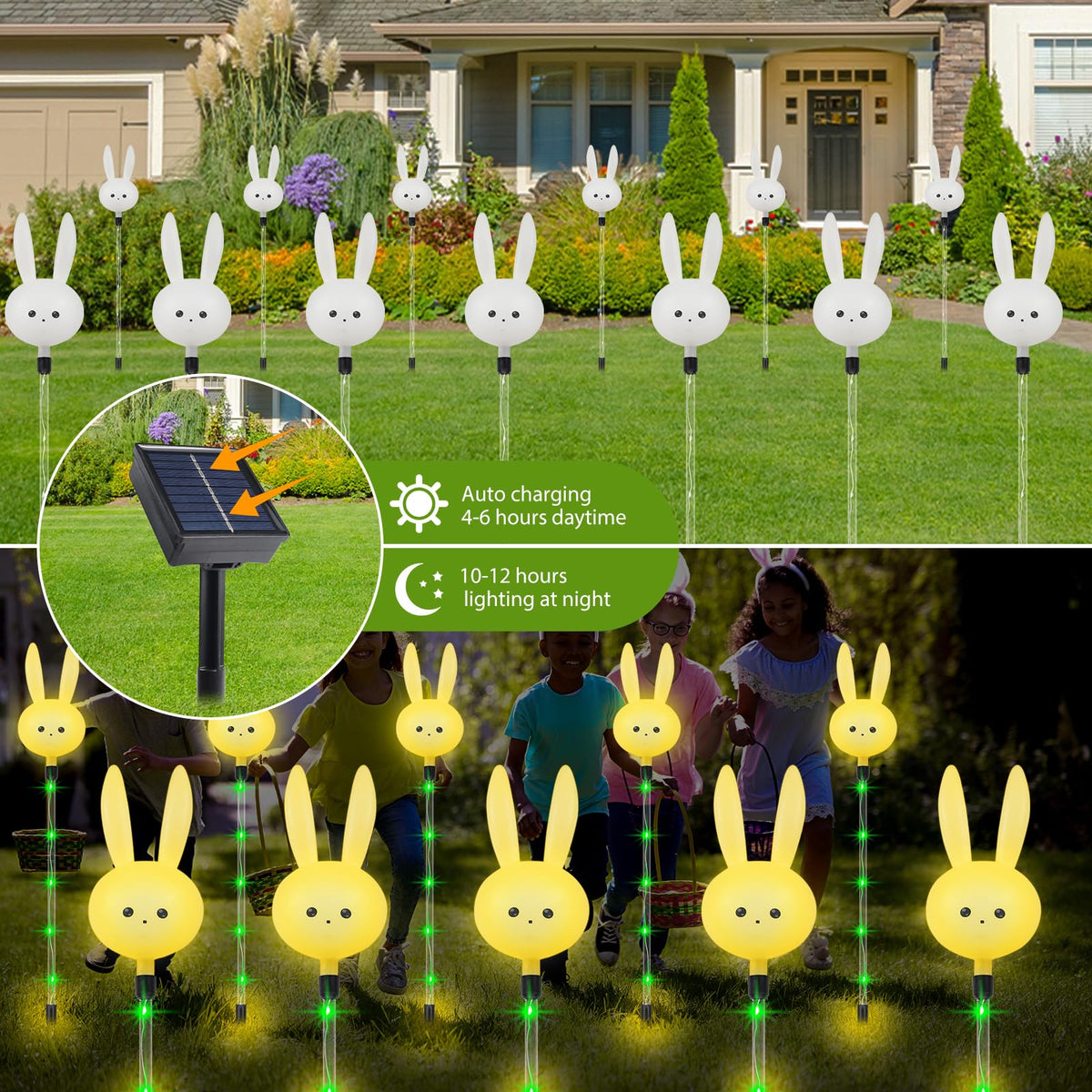 What Makes Our Products Unique? We Has A Professional Design Team To Continuously Create New Outdoor Decorative Lights,But Also Has A Manufacturer That Has Cooperated For 12 years,Giving Every Product Of X-GiftKey Have Good Quality. Specifications: Shape: Buuny Shape Light Color: Warm Light and Green Light Power Source: Solar Powered Material: Plastic Height: 18.89Inch Lead Length: 39.37Inch Spacing Length: 12.99Inch Charging time: 4-6 Hours Working time: 10-12 Hours Light Mode: 8 Lighting Modes Waterproof Rate: IP65 Waterproof LED Quantity: 18LEDs,Each Pack with 6LEDs