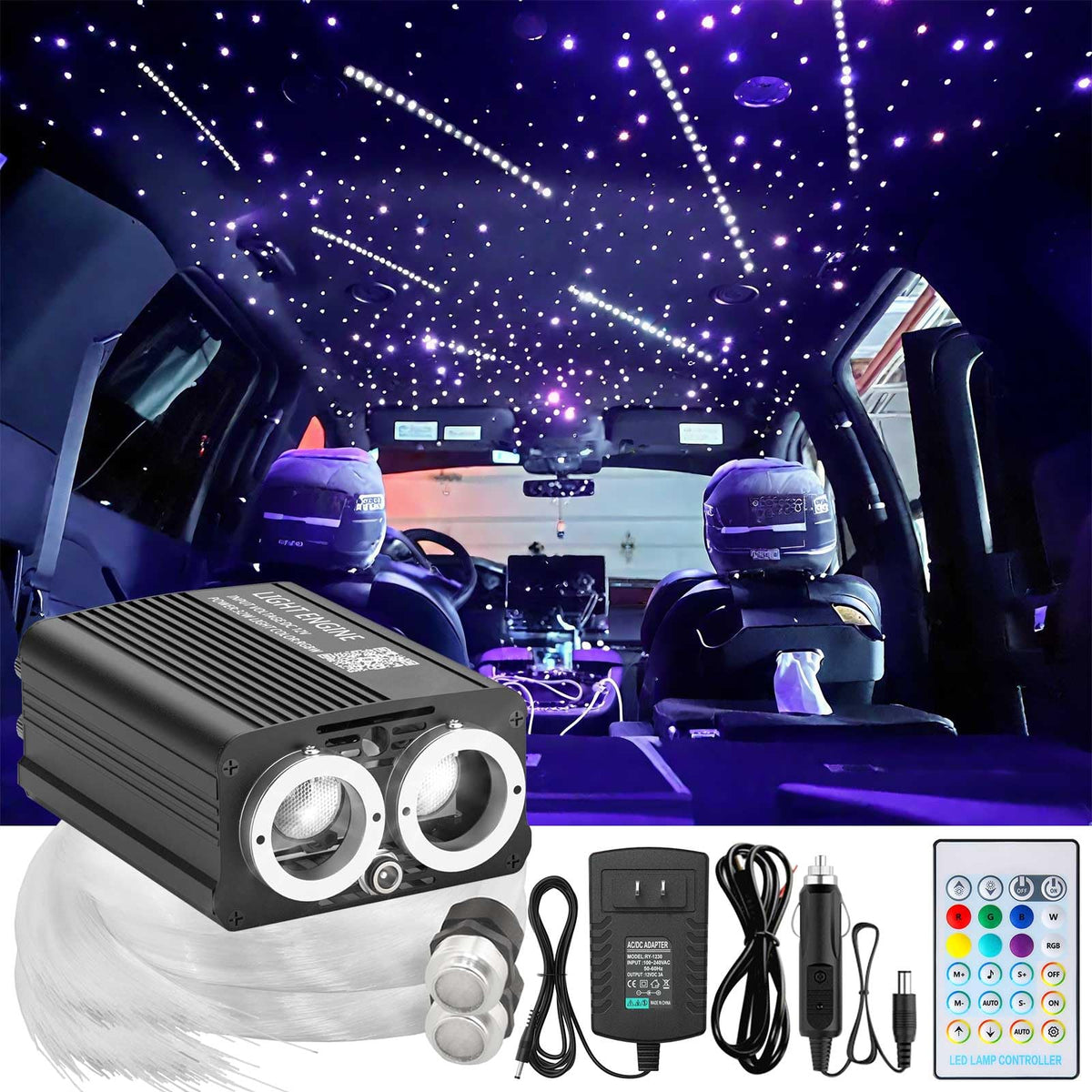 XAEIOW Dual Port 32W Starlight Headliner Light Kit, RGBW, 9.8ft Fiber Optical Cable, Sound Activated, for Car/Home/Party