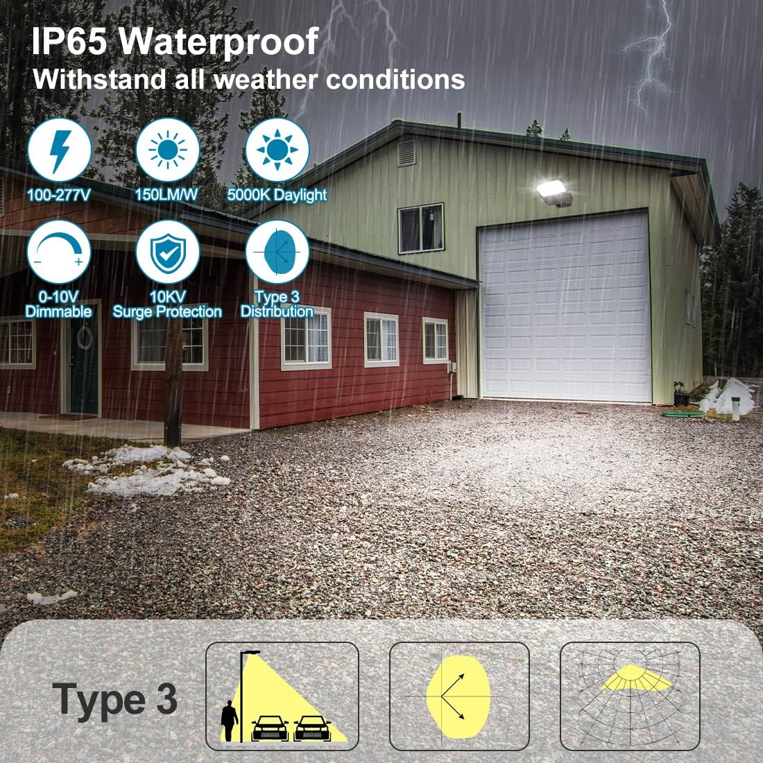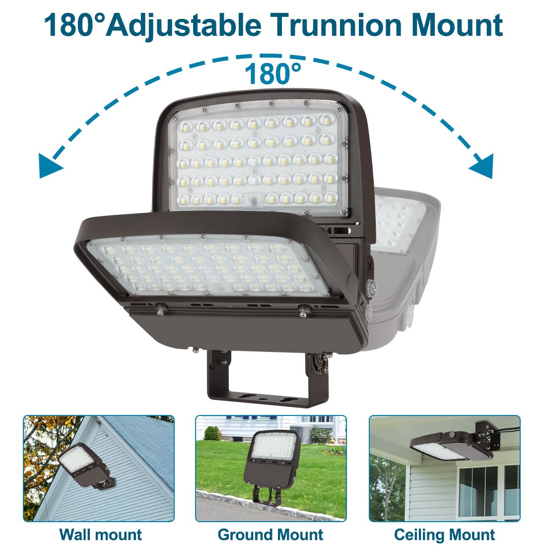 Xbuyee 150W Led Parking Lot Light With Dusk To Dawn Photocell, Dimmable Flood Lights With Trunnion Mount, 150Lm/W 5000K Daylight 100-277V Ip65, Power Selectable (75W/100W/150W) Etl Listed