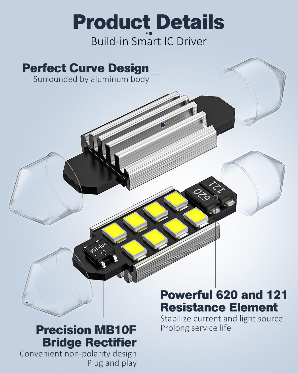 The Xdoar LED Interior Car Lights Kit, which is suitable for more than 90% of vehicles, includes 7 models of LED bulbs, 6 per model, for a total of 42. Note: Generally one package is enough for one car dome map license plate light.