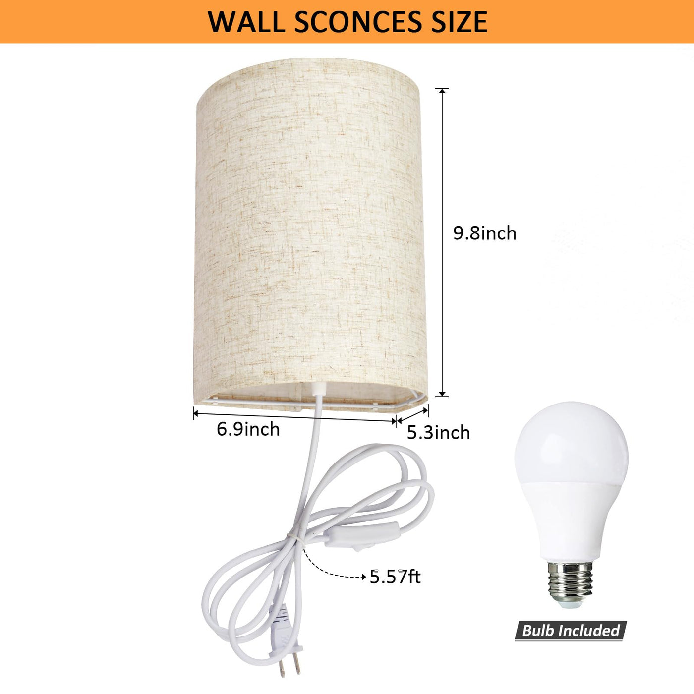 Xieyor Plug In Wall Sconce, 3 Colors Wall Sconces Set Of Two, Industrial Plug In Wall Light, Wall Sconce Lighting On/Off Switch