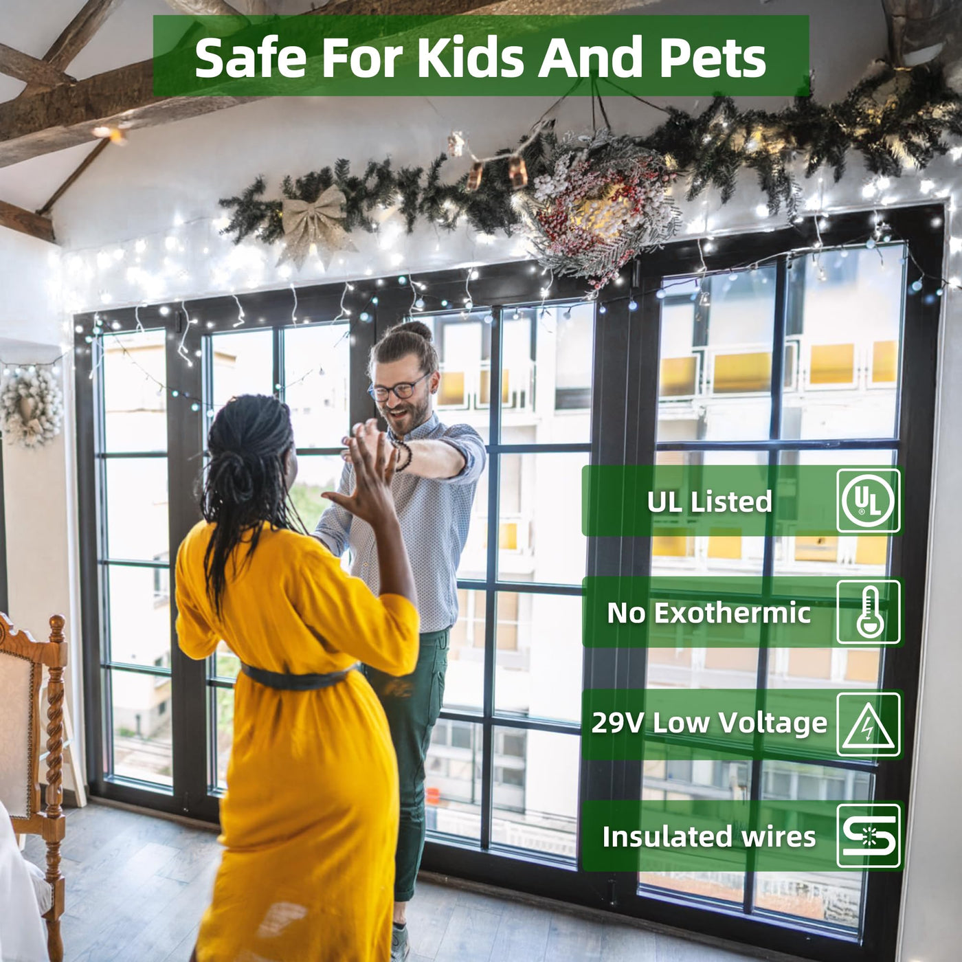 Q: Are the LED Christmas lights safe for indoor and outdoor use?A: Yes, the LED Christmas lights are UL-tested and safe for both indoor and outdoor use, making them ideal for various festive decorations.